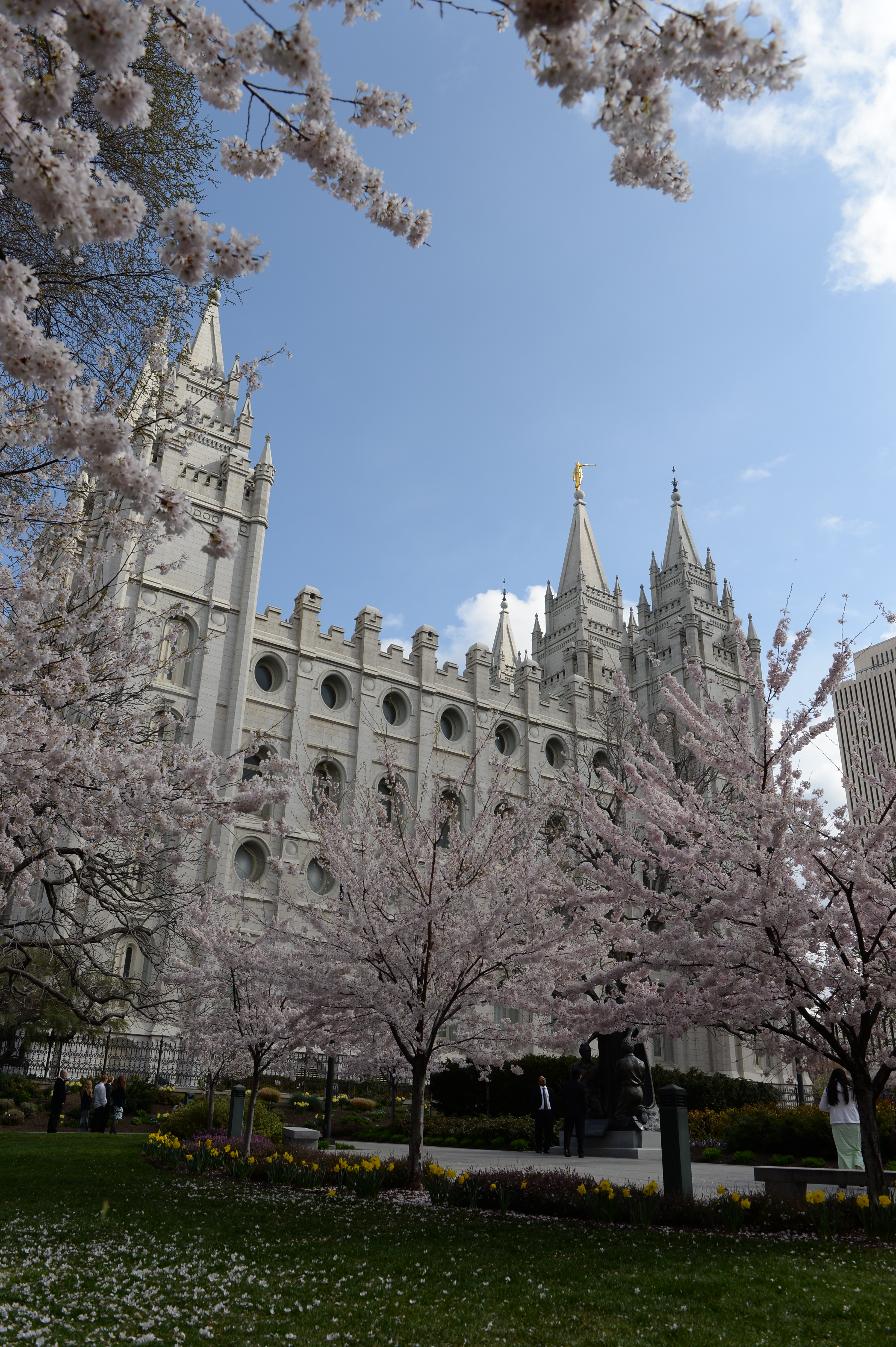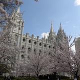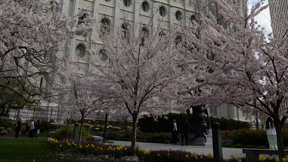 - Trees in bloom in front of the Salt Lake City Temple during conference weekend, 5 April 2014