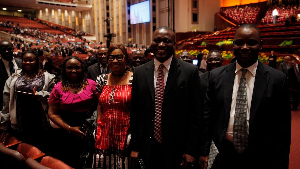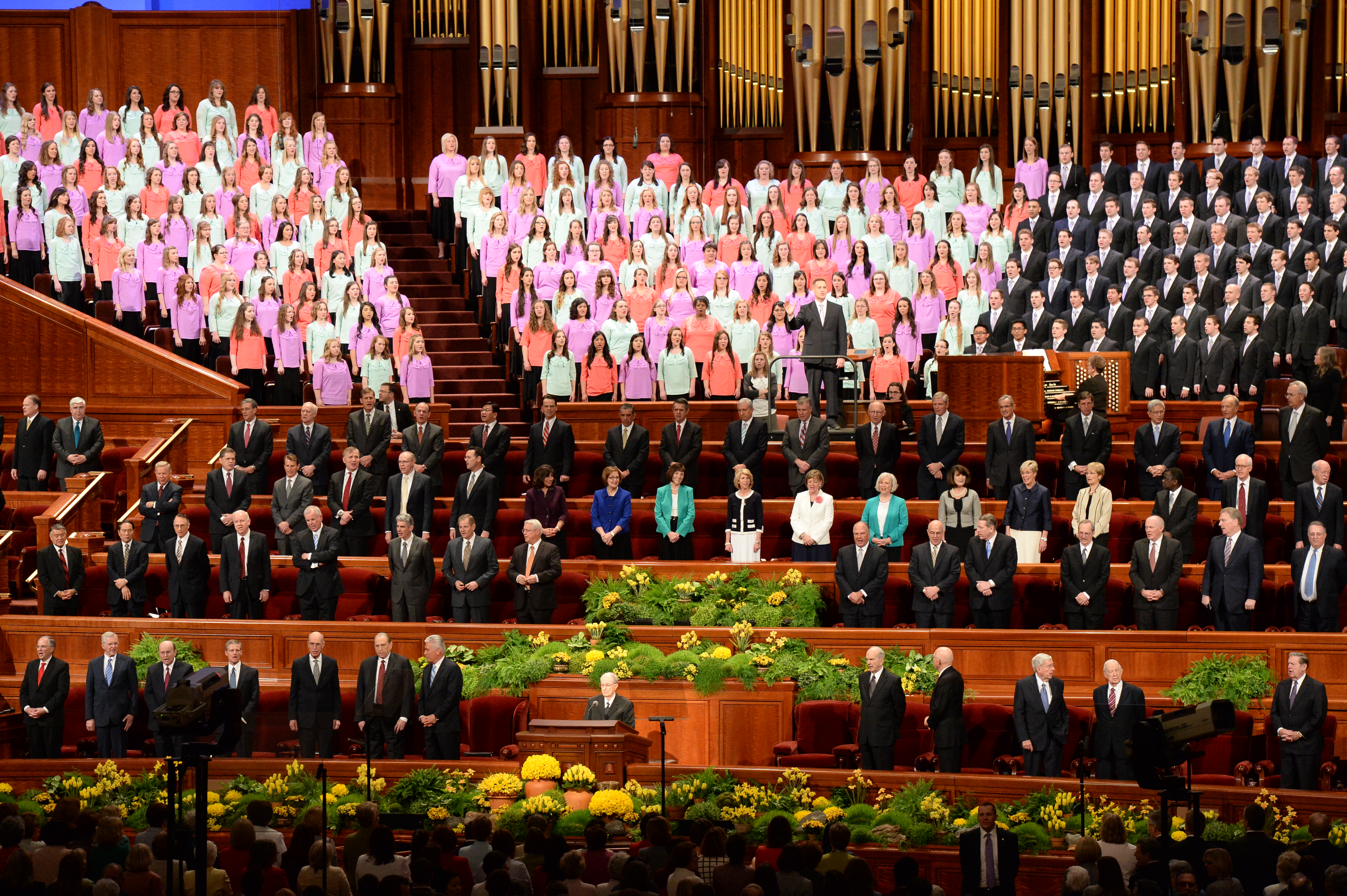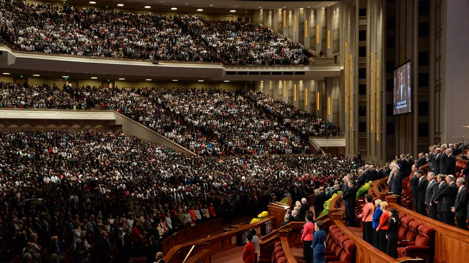 - The general leadership of The Church of Jesus Christ of Latter-day Saints stand and sing with the congregation at the Conference Center in Salt Lake City, Utah during the Saturday afternoon session of general conference, 5 April 2014