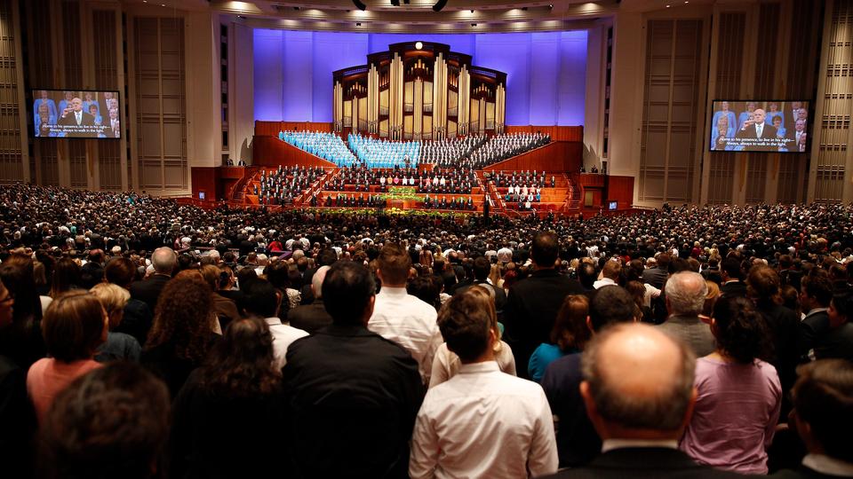 - Conference goers listen to a session of general conference in the Tabernacle on Temple Square in Salt Lake City, Utah, 5 April 2014