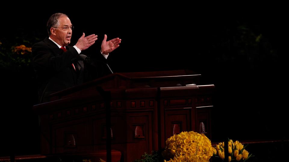 - Elder David A. Bednar of the Quorum of the Twelve Apostles speaks at the Sunday morning session of general conference, 6 April 2014