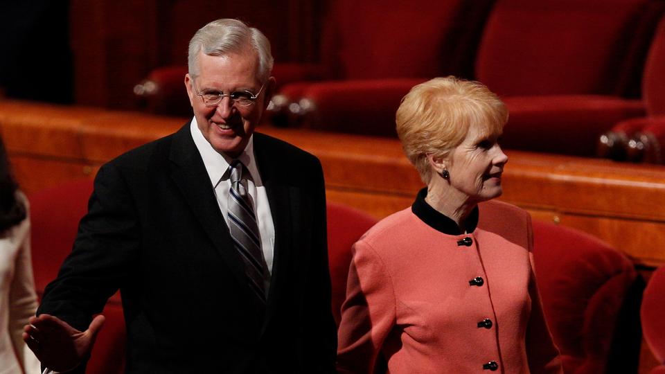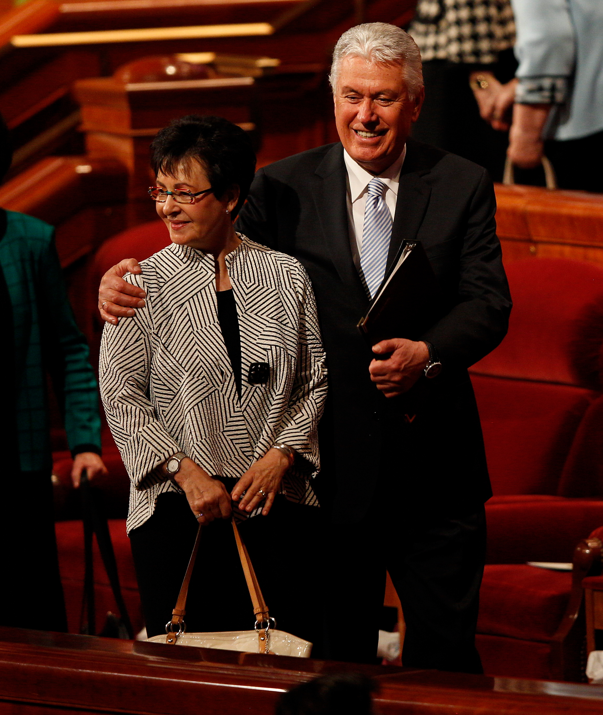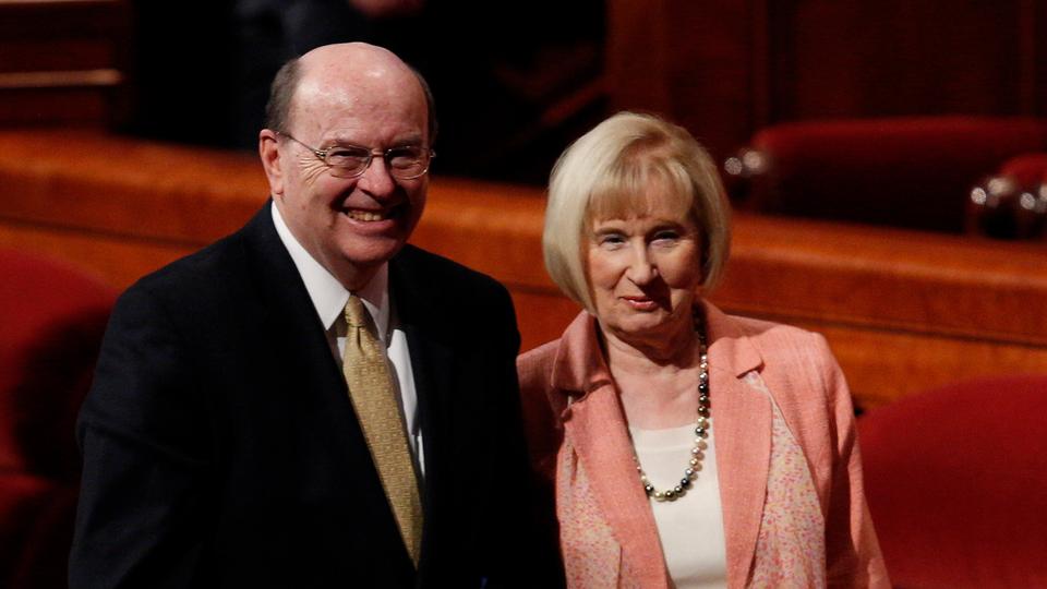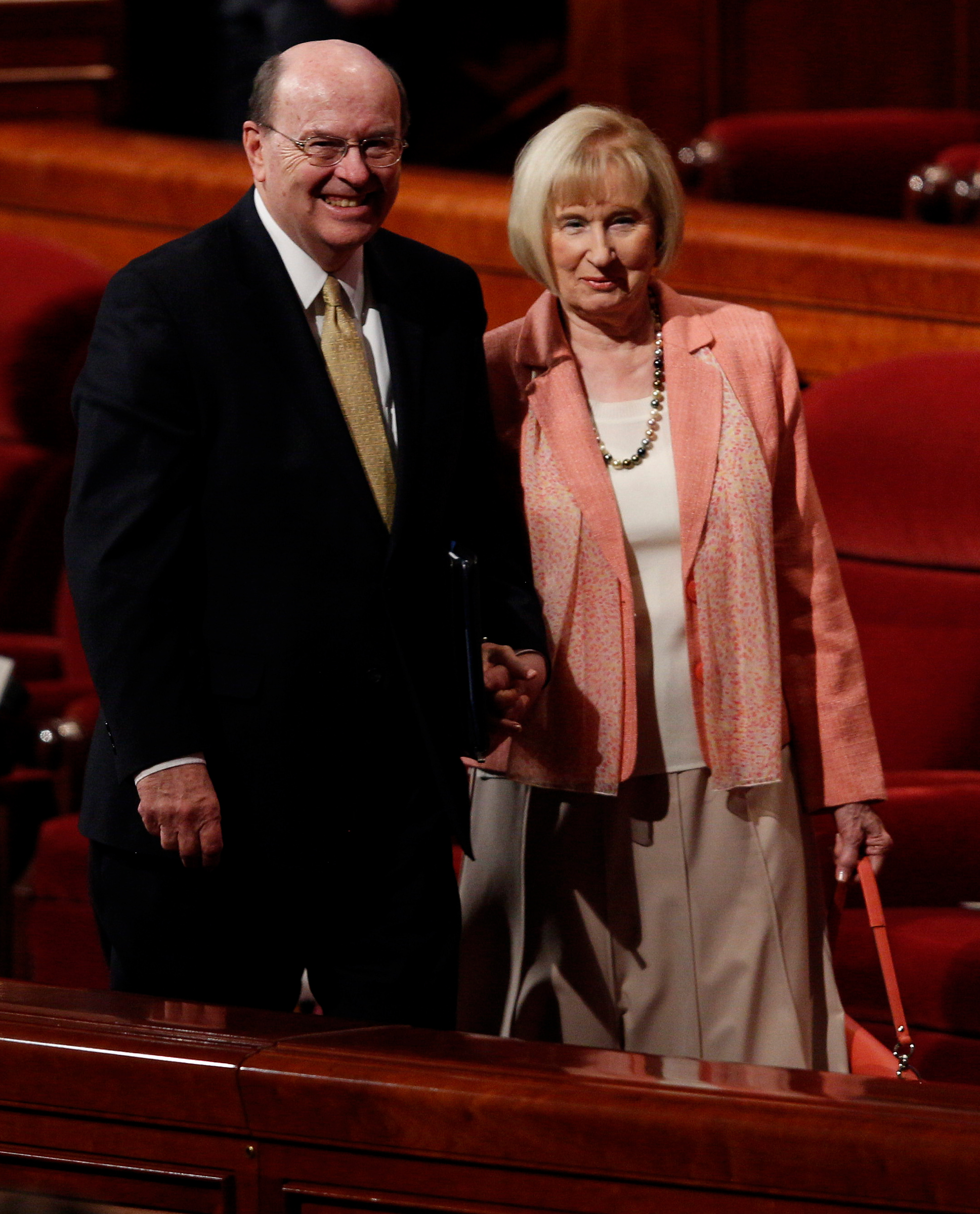 - Elder Jeffrey R. Holland of the Quorum of the Twelve Apostles and wife Patricia leave the stand of the Conference Center in Salt Lake City, Utah following the Sunday morning session of general conference, 6 April 2014