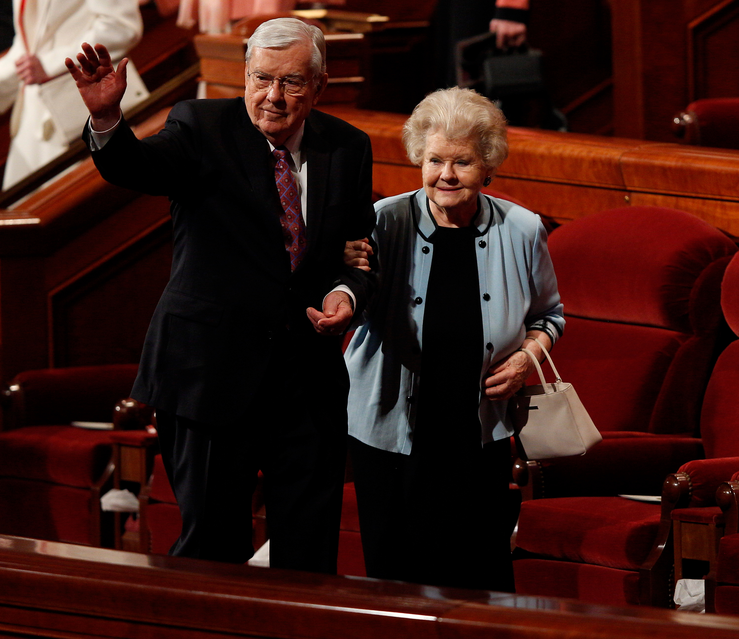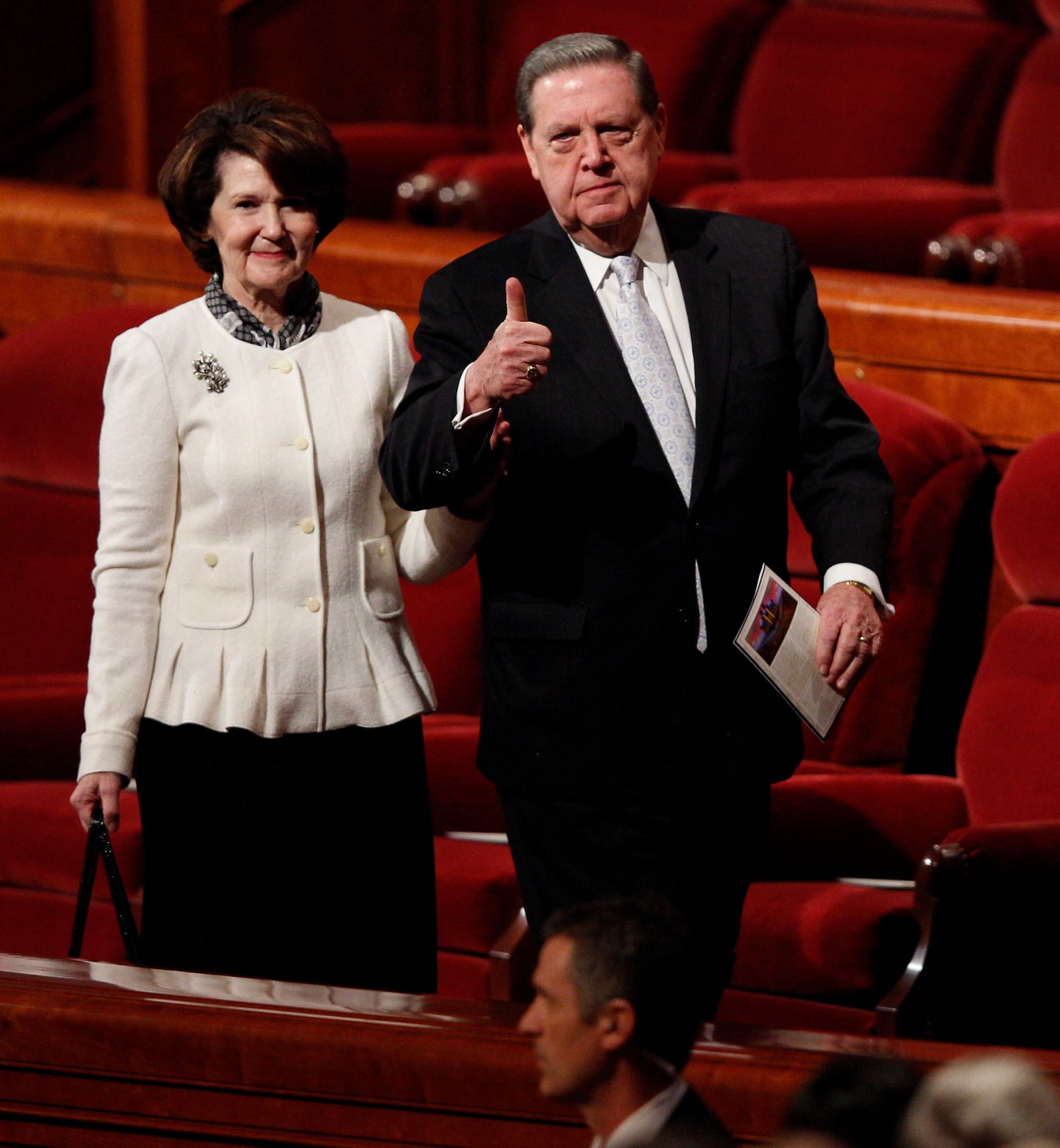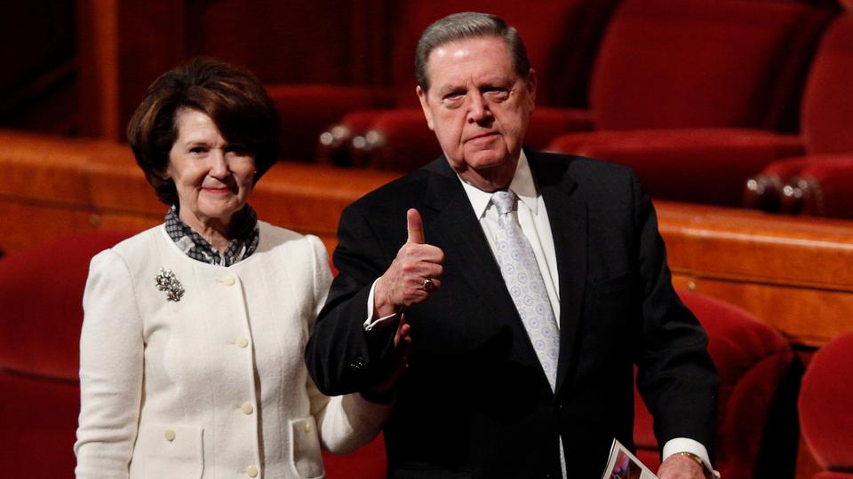 - Elder M. Russell Ballard of the Quorum of the Twelve Apostles and wife Barbara leave the stand of the Conference Center in Salt Lake City, Utah following the Sunday morning session of general conference, 6 April 2014