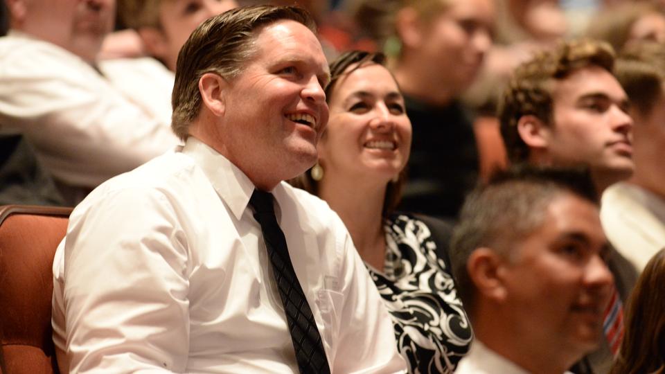 - A family listens to a speaker during the Saturday afternoon session of general conference at the Conference Center in Salt Lake City, Utah, 5 April 2014