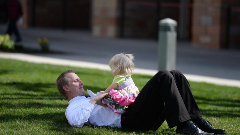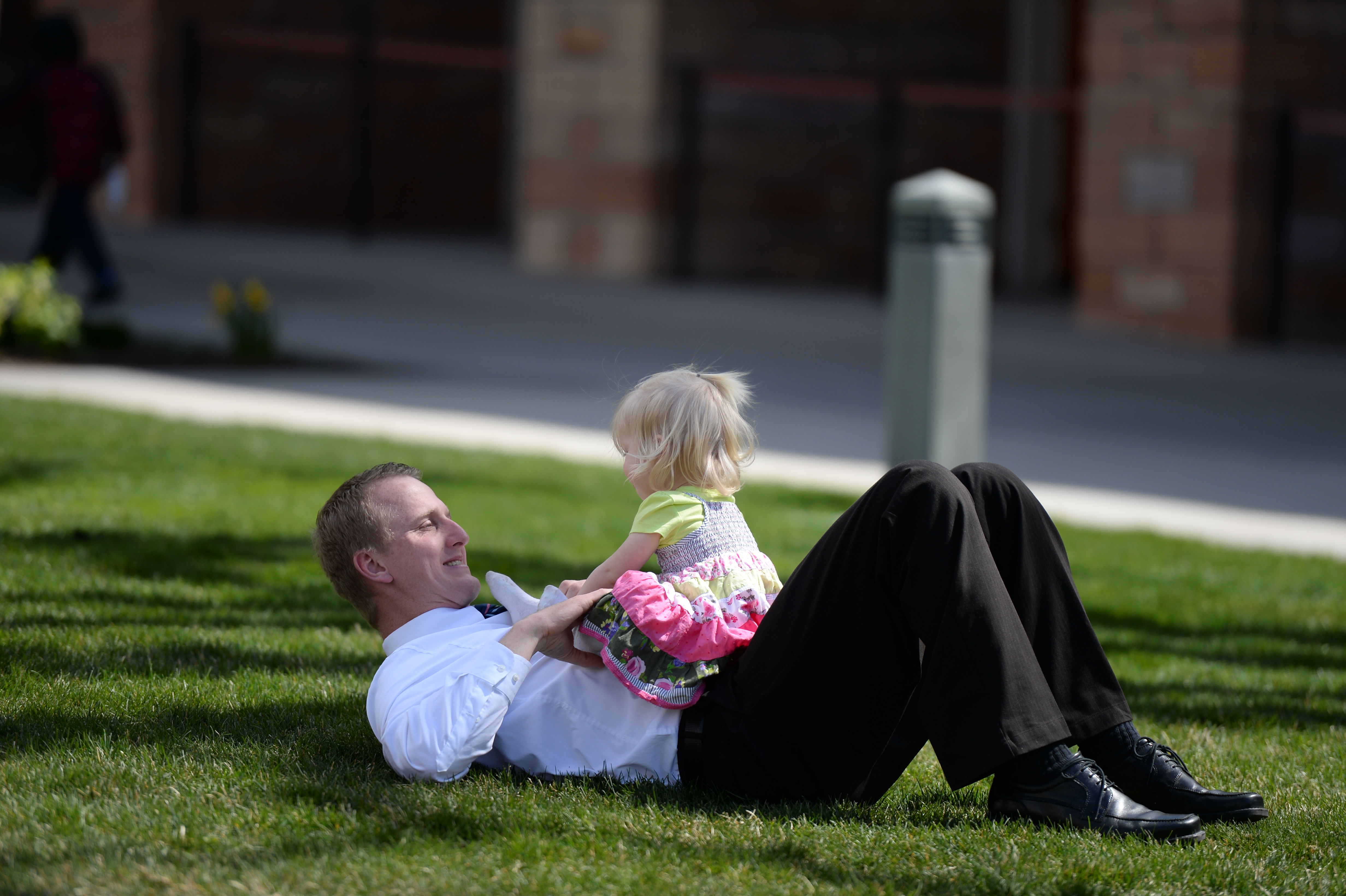 - A father and daughter relax on Temple Square in Salt Lake City, Utah during general conference weekend, 5–6 April 2014