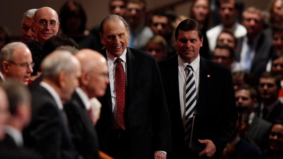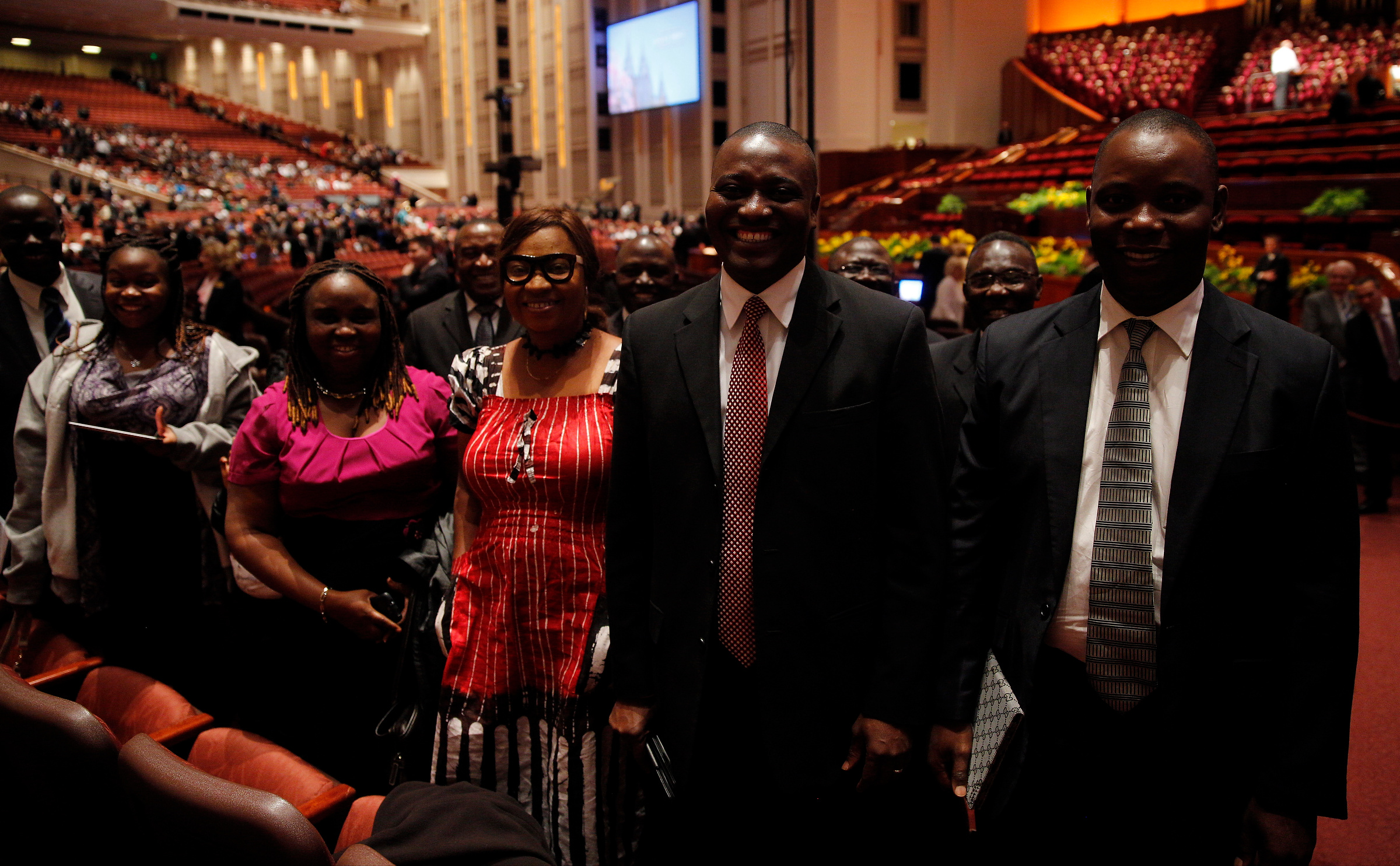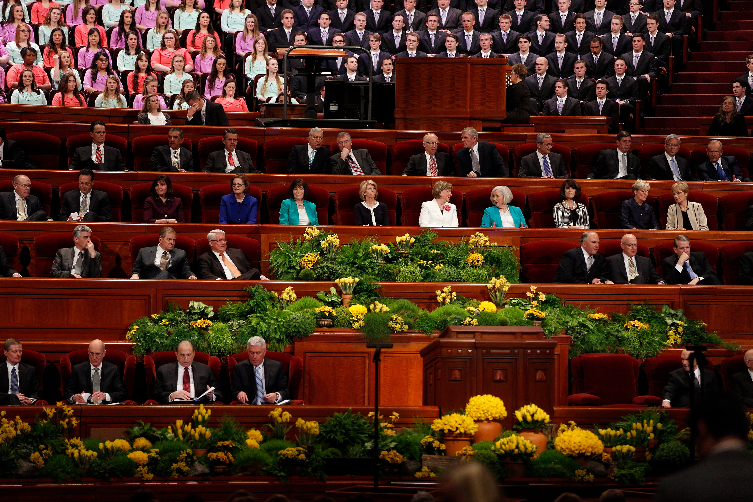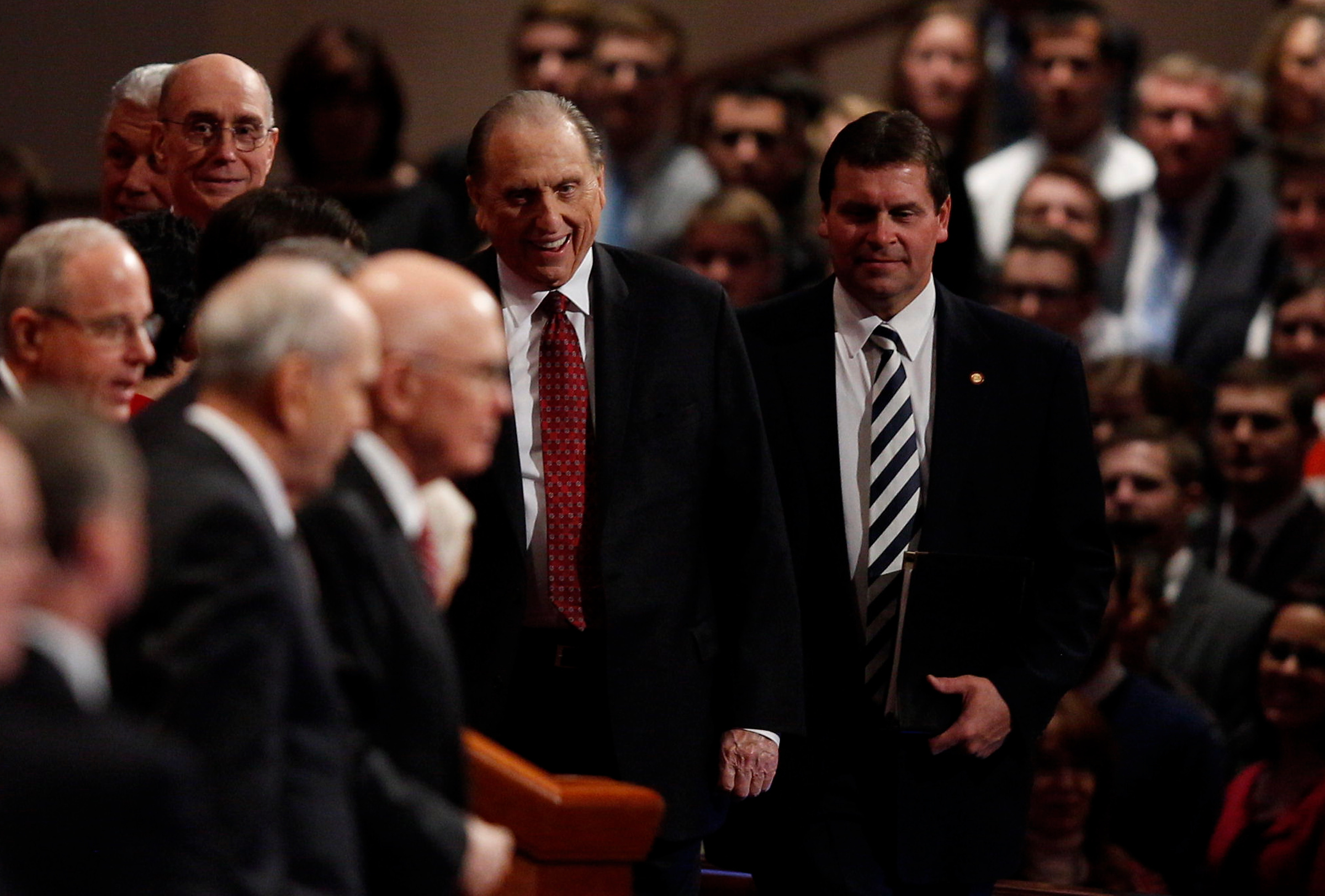 - Leaders of The Church of Jesus Christ of Latter-day Saints take their place on the stand in the Conference Center in Salt Lake City, Utah prior to the Saturday afternoon session of general conference, 5 April 2014