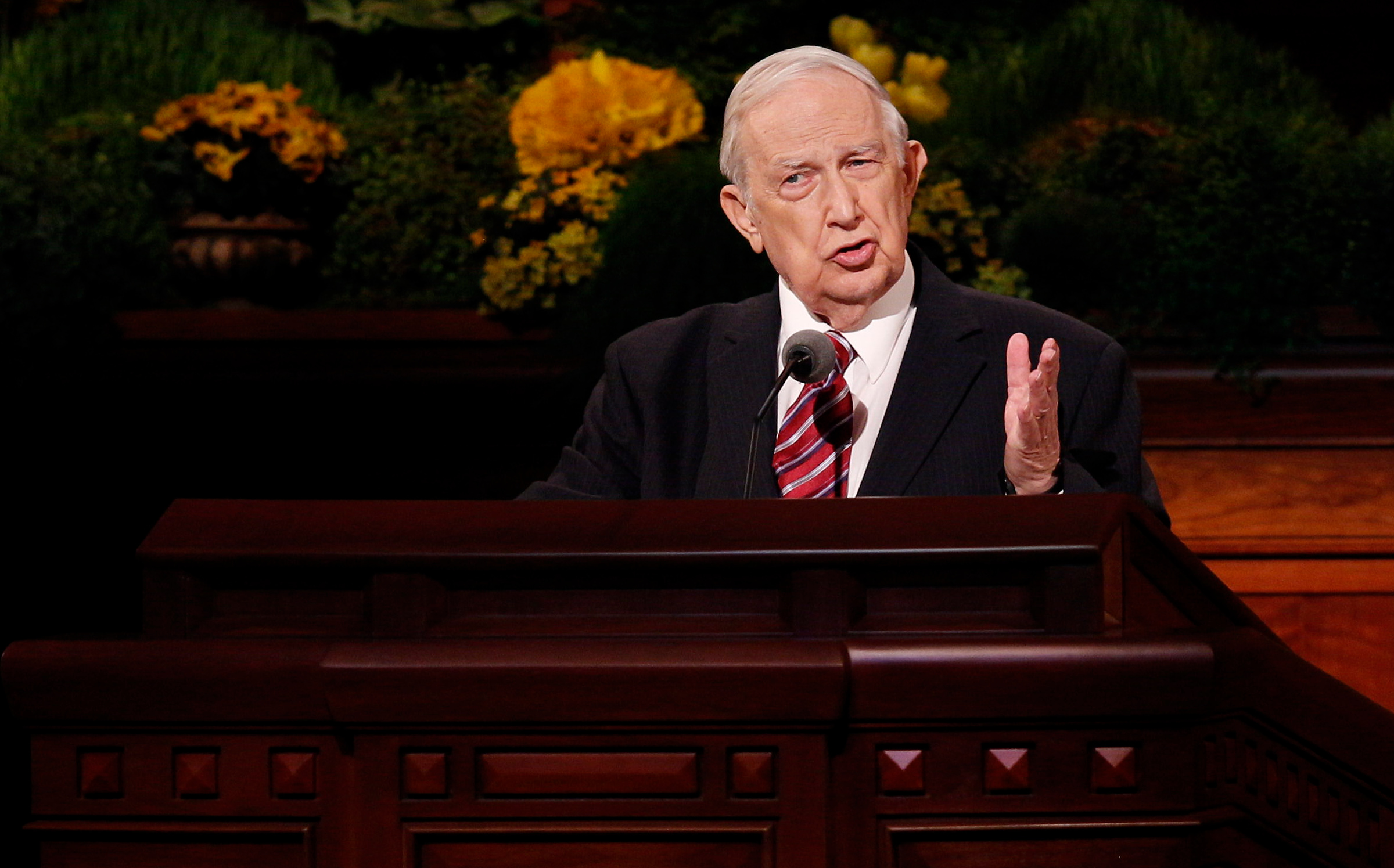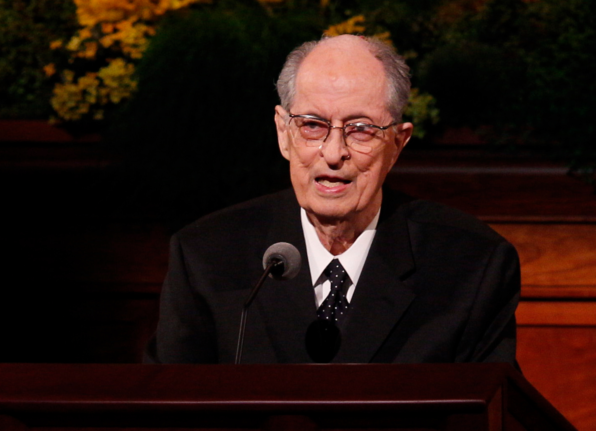 - Elder L. Tom Perry of the Quorum of the Twelve Apostles speaks at the Sunday afternoon session of general conference, 6 April 2014.