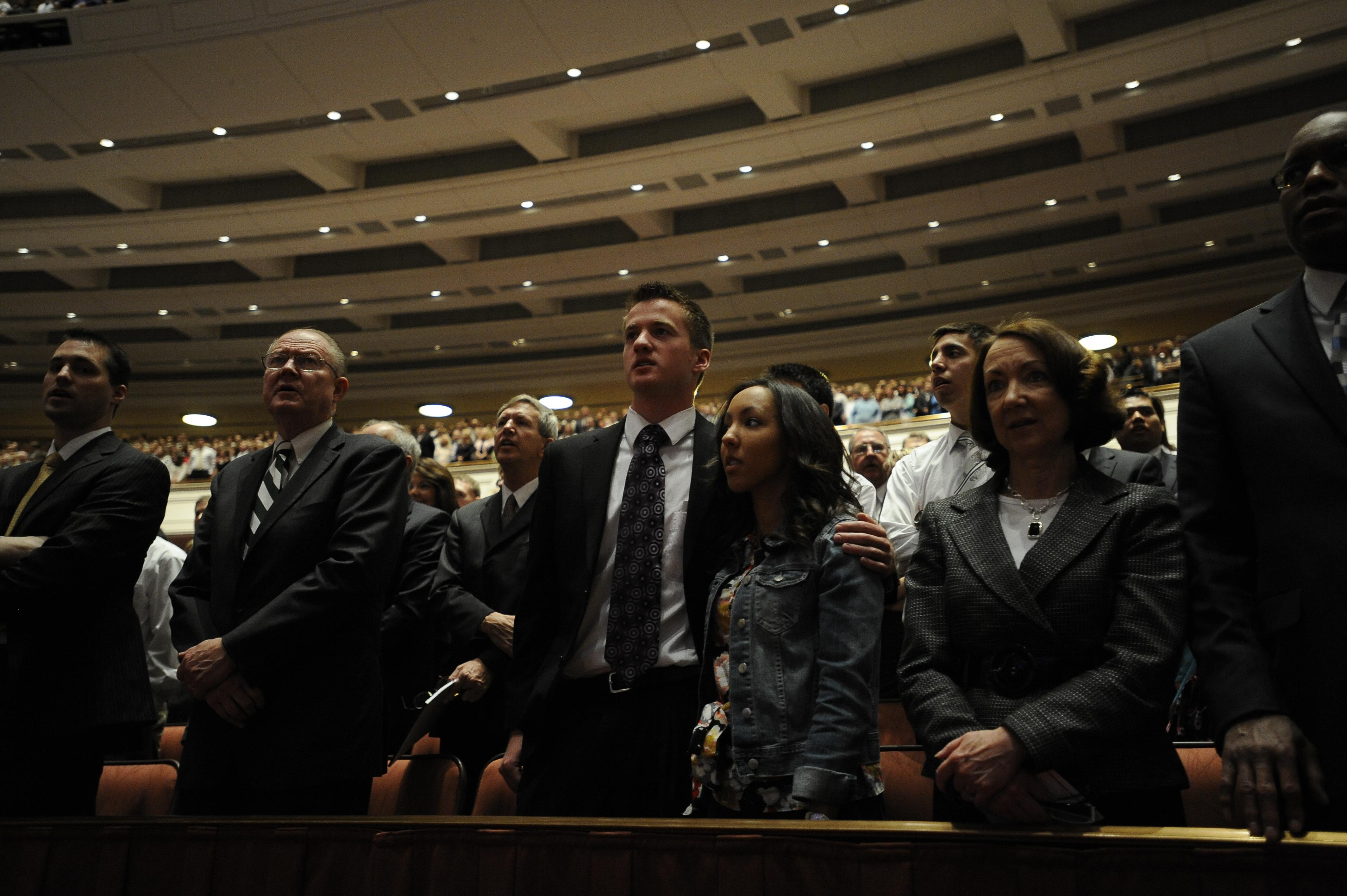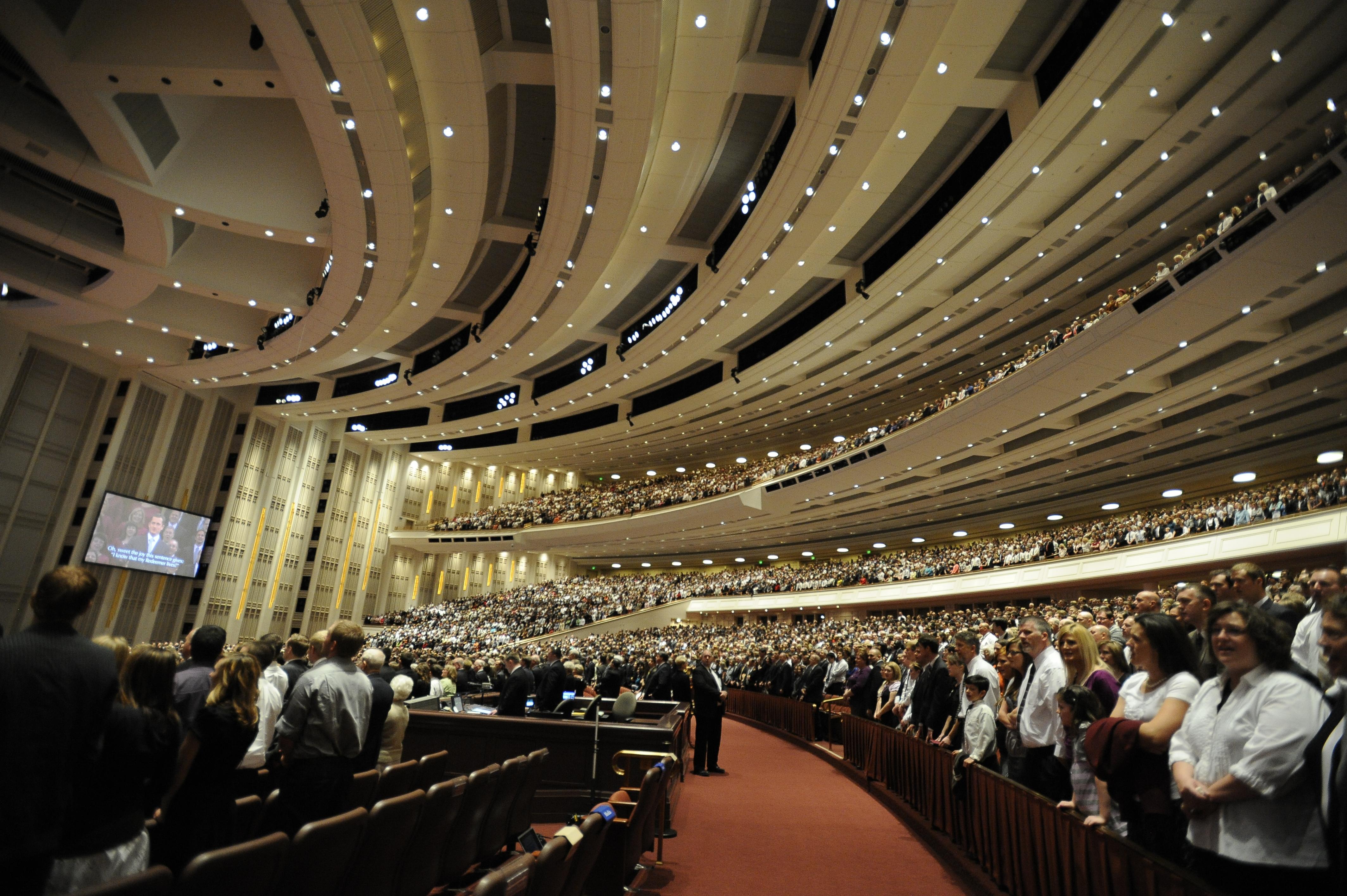 General conferences of The Church of Jesus Christ of Latter-day Saints take place every six months, originating in the 21,000-seat Conference Center in Salt Lake City and reaching a global audience estimated to be in the millions. The proceedings are available in 92 languages via television, radio, satellite and Internet broadcasts. Five sessions of the conference will be held Saturday and Sunday, 2-3 April 2011, in the Conference Center in Salt Lake City, Utah.