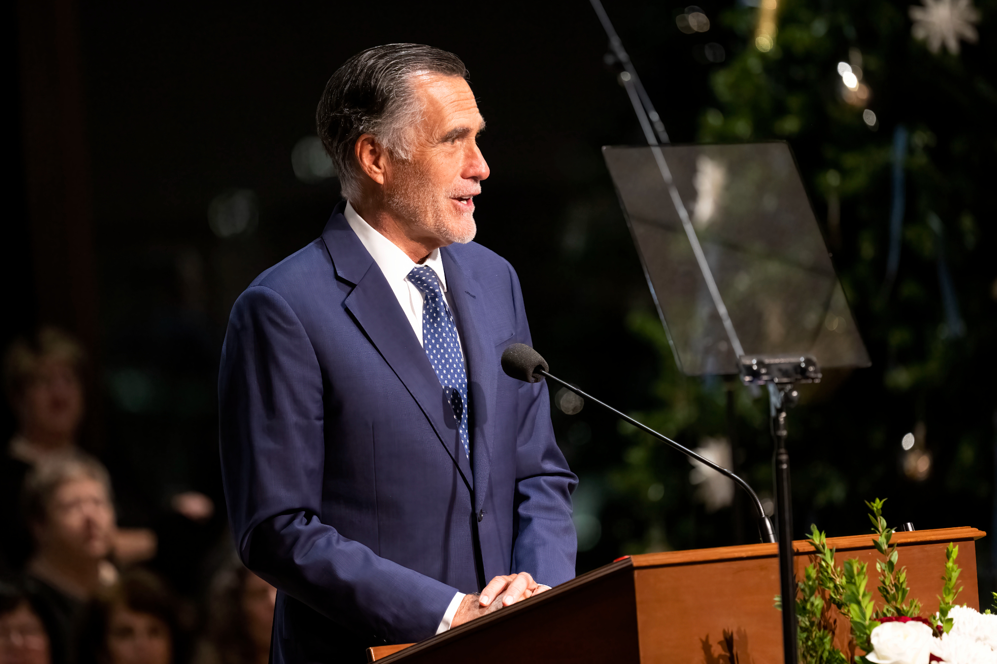 The lighting ceremony included J.W. “Bill” Marriott and his wife, Donna Marriott, and the Washington D.C. Temple Choir. Everyone joined in singing Christmas carols together. During the program, Utah Senator Mitt Romney introduced Ambassador Mirpuri; Bill Marriott introduced Elder Cook.