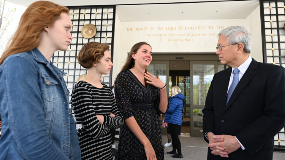 While leading tours of the Washington D.C. Temple this week for invited guests, Elder Gerrit W. Gong of the Quorum of the Twelve Apostles spontaneously called upon Latter-day Saint youth and others to share their love of Christ.
