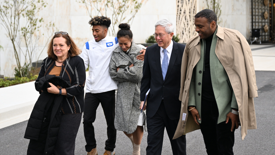 Elder Gerrit W. Gong with his wife, Susan, visit with the Johnson family while touring the renovated Washington D. C. Temple in Kensington, Maryland on April 19, 2022.2022 by Intellectual Reserve, Inc. All rights reserved.Elder Gong called Batchlor “a remarkable young man” of “great excitement and spiritual depth.”