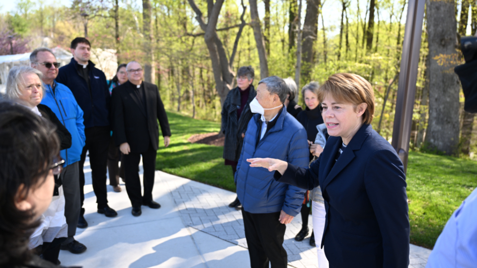 Elder Gerrit W. Gong of the Quorum of the Twelve Apostles shares the “Muslims and Latter-day Saints: Beliefs, Values, and Lifestyles” pamphlet while leading tours of the Washington D.C. Temple for invited guests on April 20, 2022.2022 by Intellectual Reserve, Inc. All rights reserved.Judy said she hopes more people will visit the Washington D.C. Temple because “the different parts of the building accent different parts of the depth of your relationship with Christ.”