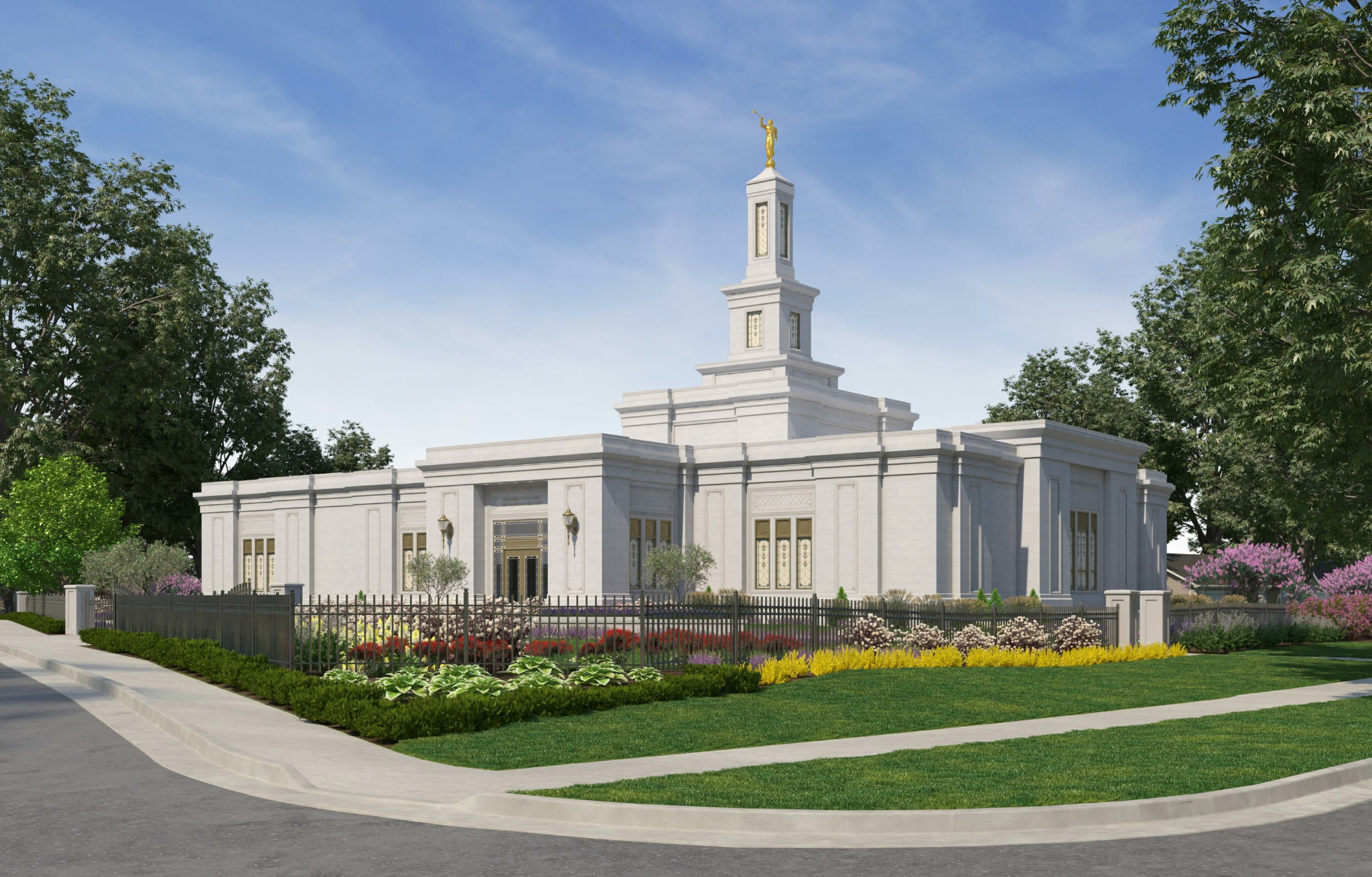 An artist's rendering of the renovated Columbus Ohio Temple. 2022 by Intellectual Reserve, Inc. All rights reserved.After a media day (April 24, 2023) and a private open house for invited guests (April 25–28, 2023), a public open house will begin Saturday, April 29. From then until Saturday, May 13, 2023 (Sundays excluded), anyone can walk through the temple.
