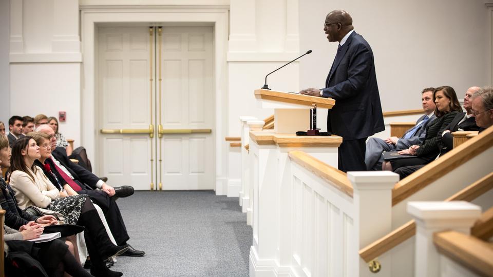 Dr. Diop said it is an honor to receive the award named after an individual who stood for religious freedom and uplifted the downtrodden who were not of his own faith. He also expressed gratitude for the friendship he had with the late Elder L. Tom Perry of the Quorum of the Twelve Apostles (1922–2015). He said he knew from his associations with him that Elder Perry was a man of God. Dr. Diop pledged to do as Thomas L. Kane and stand for religious liberty for all and encouraged all to accept the same pledge.