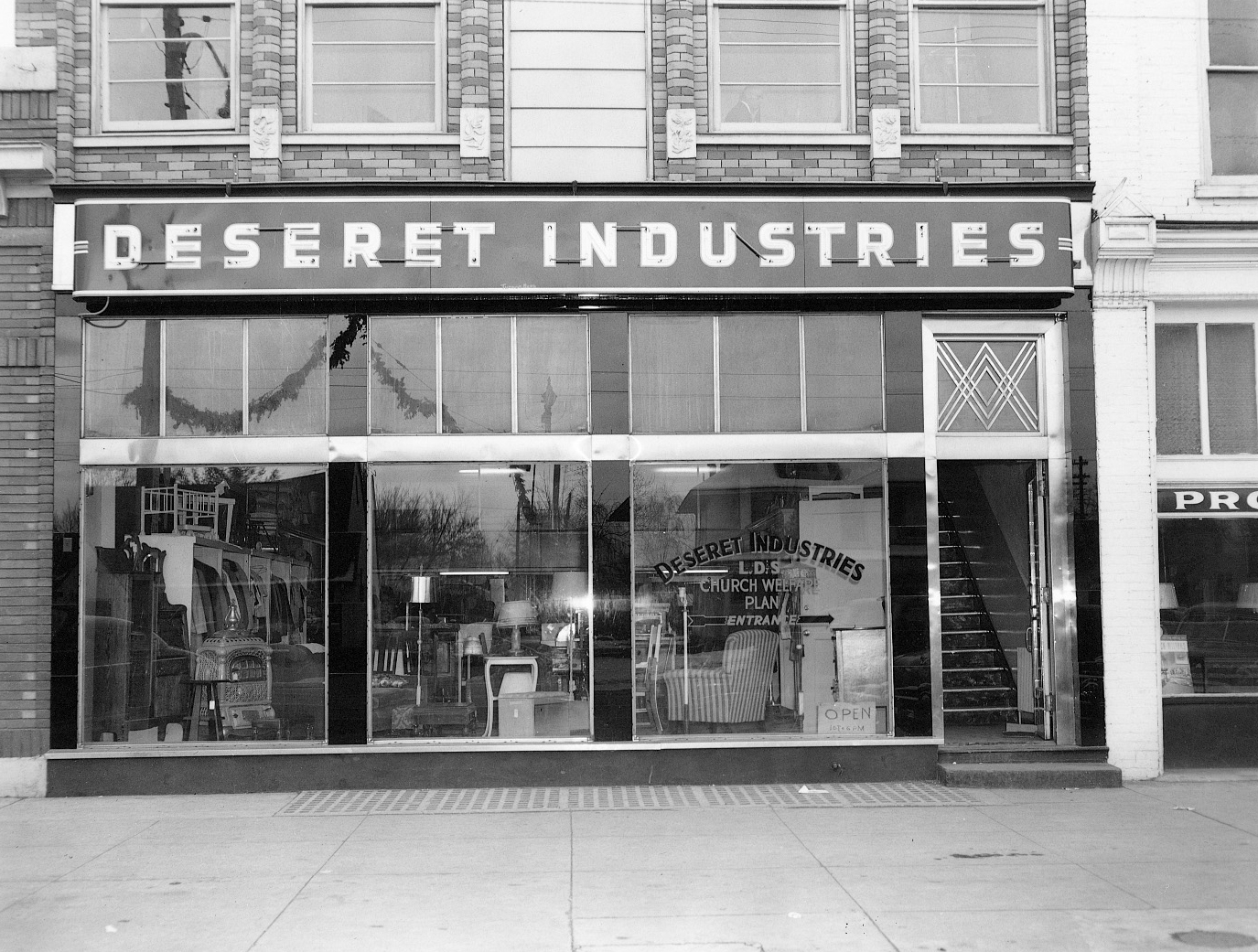 Soon after his trip, in May 1938, Eccles was asked to lead a new Church operation designed to provide both jobs and low-cost goods for members in need. The first Deseret Industries plant opened in downtown Salt Lake City on 12 August 1938, with Eccles at the head and Holger M. Larsen as his assistant. After collection drives in the area, they made their first retail sales on 1 September 1938.