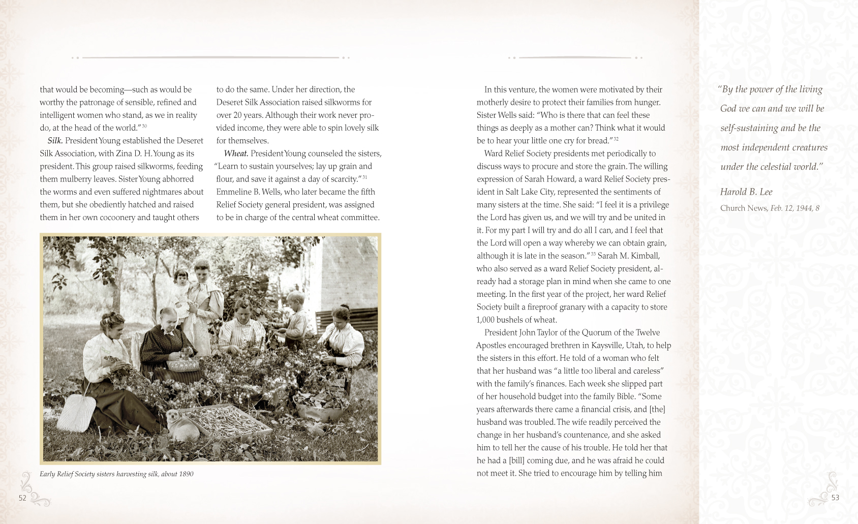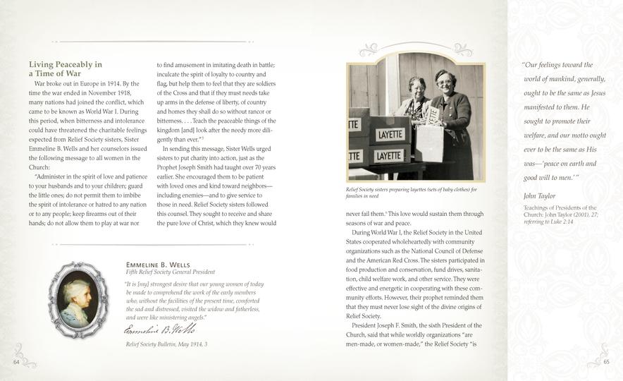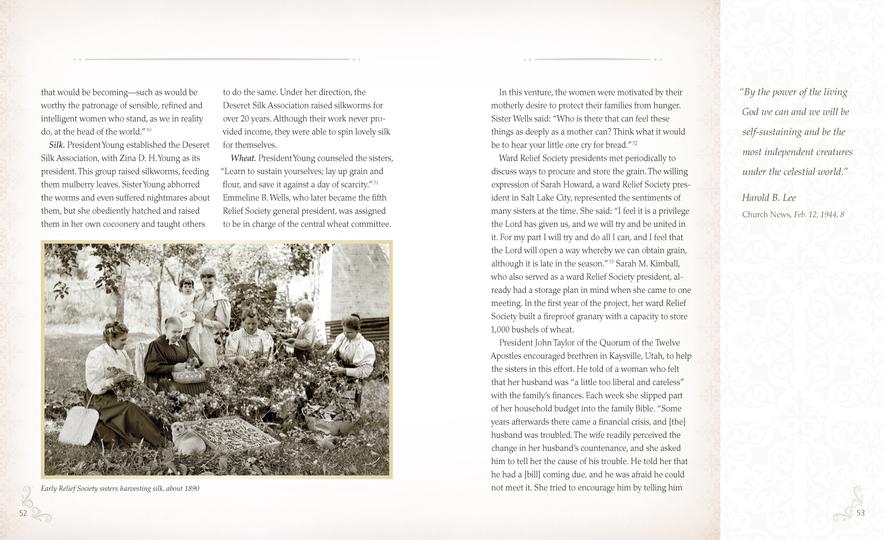The 208-page book is organized by themes such as family, sisterhood and charity. Each chapter includes stories of Latter-day Saint women throughout history and around the world today. President Beck said the book is designed to be user-friendly for readers with varying literacy levels. It is also visually inviting, with every page featuring colorful photographs and beautiful artwork.