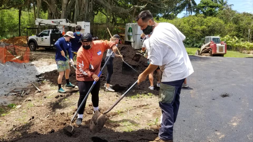 In addition to financial support, Latter-day Saint volunteers have been working to support the Pearl Haven landscape installation and assembly of interior furnishings for the much-anticipated campus, set to receive its first residents in April. About 35 volunteers joined the landscape crew on March 31, 2021.