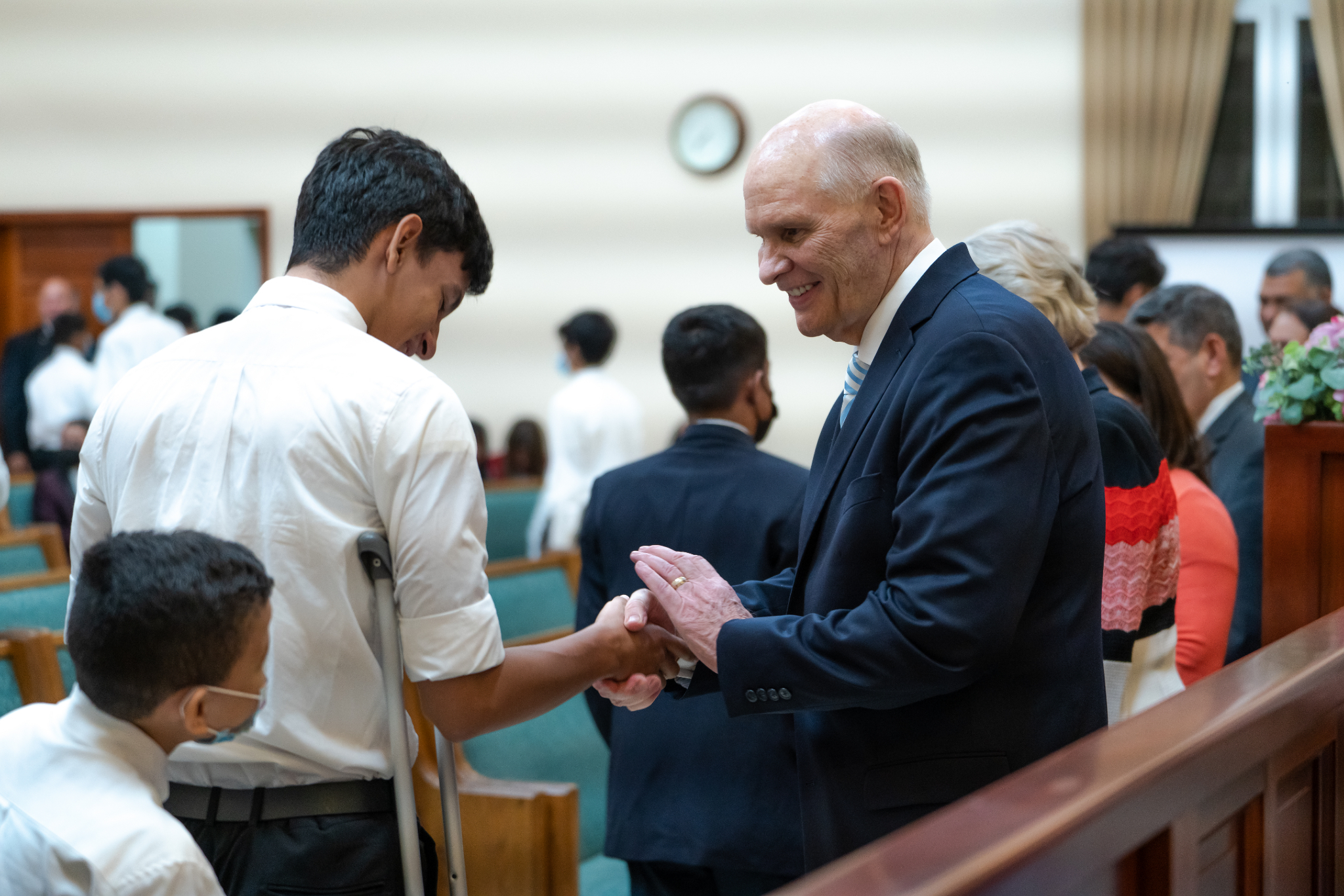 “Los niños cantaron con tanto fervor y amor”, dijo el élder Renlund. “La luz de Cristo verdaderamente brilla en sus rostros. Varios dieron testimonios sinceros y conmovedores acerca del Salvador y Su obra en los últimos días”.
