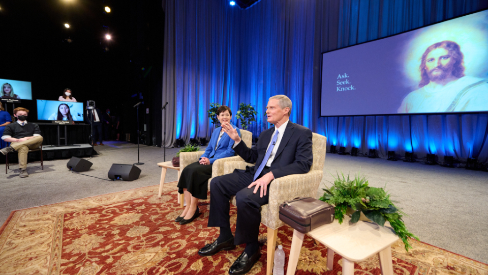 The Apostle and his wife focused on the heavenly power that unfolds when young adults “Ask, Seek, Knock” (the broadcast’s theme, based on Matthew 7:7–8).
