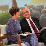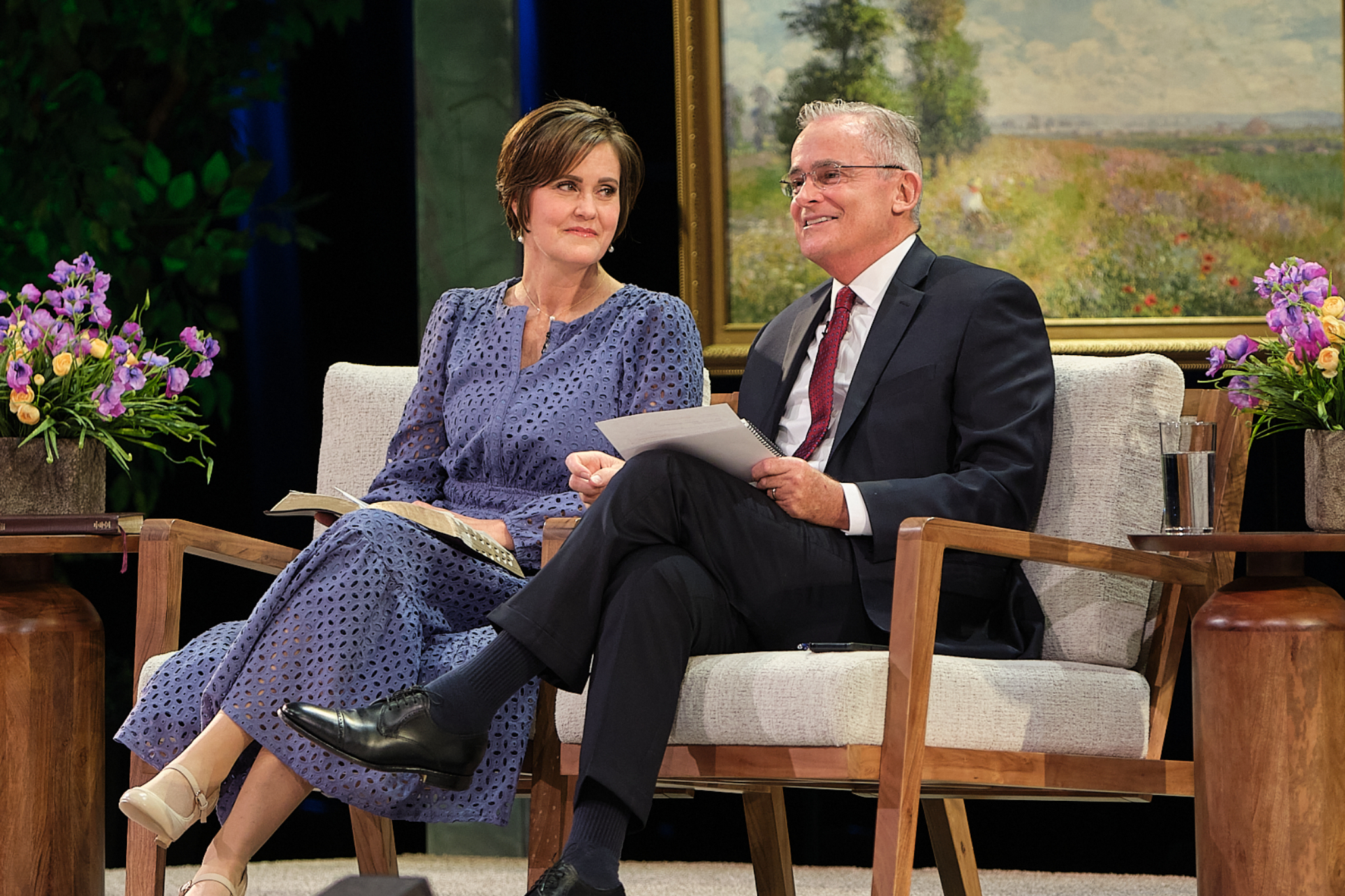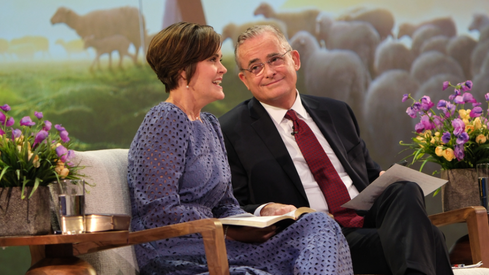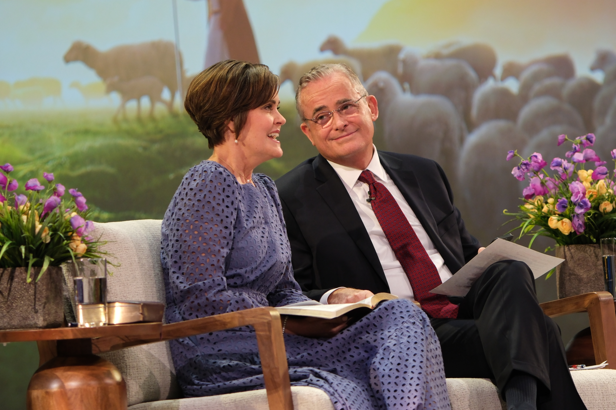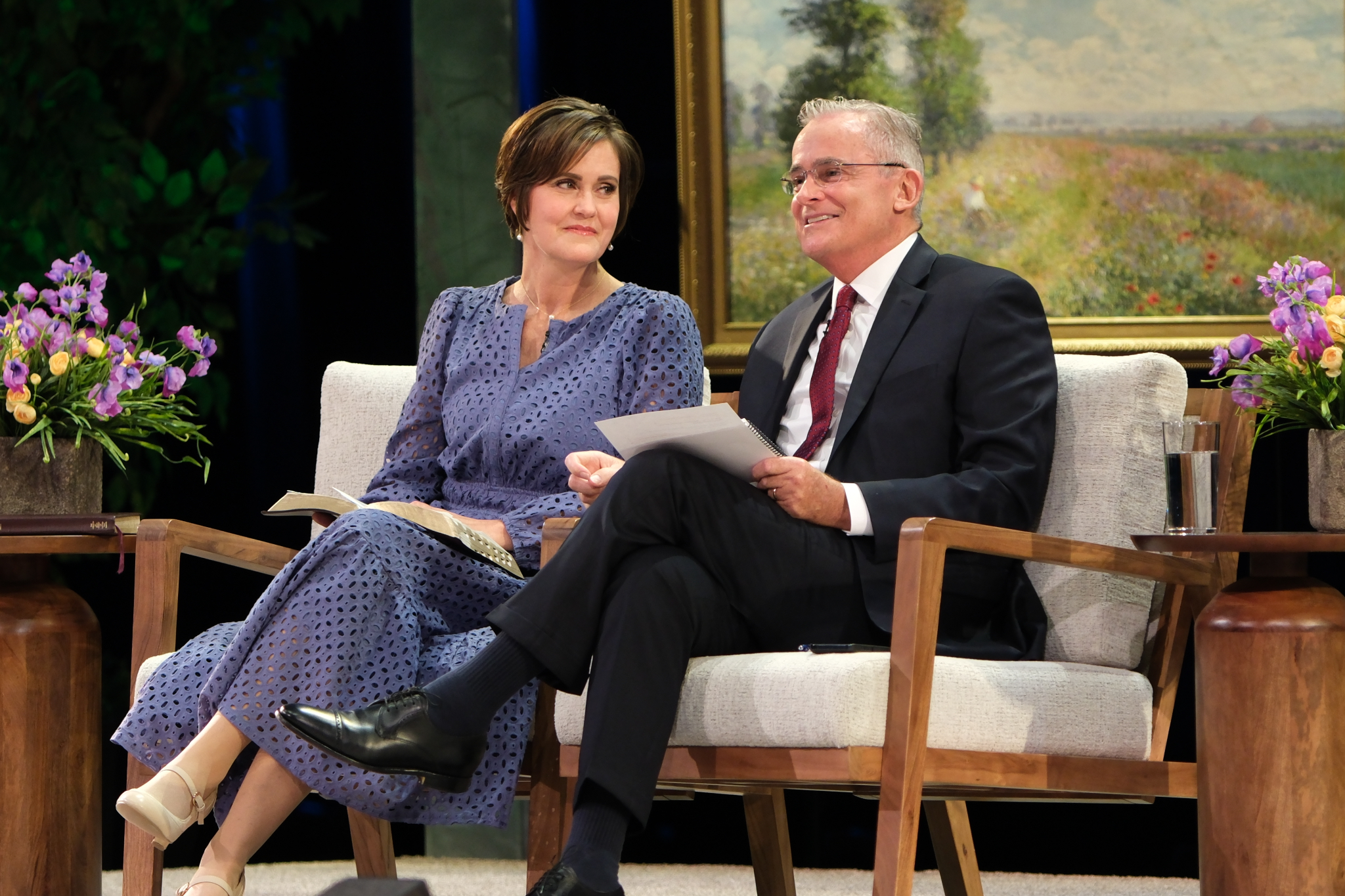 Elder Patrick Kearon of the Quorum of the Twelve Apostles of The Church of Jesus Christ of Latter-day Saints and his wife, Jennifer, laugh during the Worldwide Devotional for Young Adults on Sunday, February 1, 2026, at the Conference Center in Salt Lake City.2026 by Intellectual Reserve, Inc. All rights reserved.