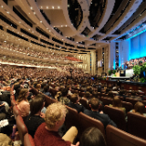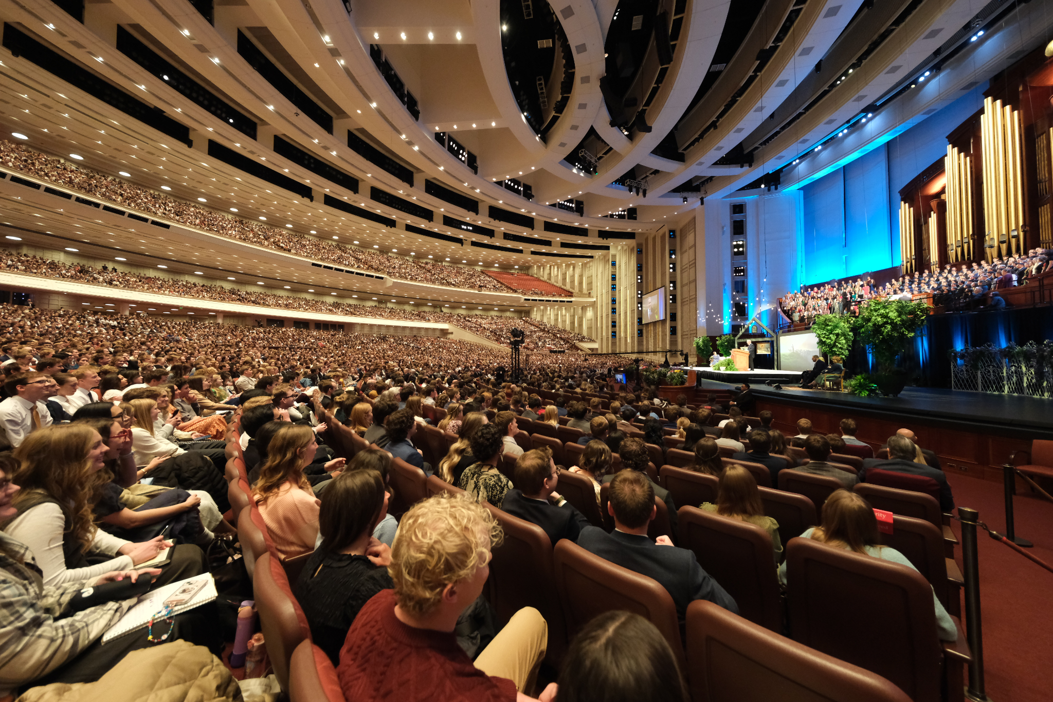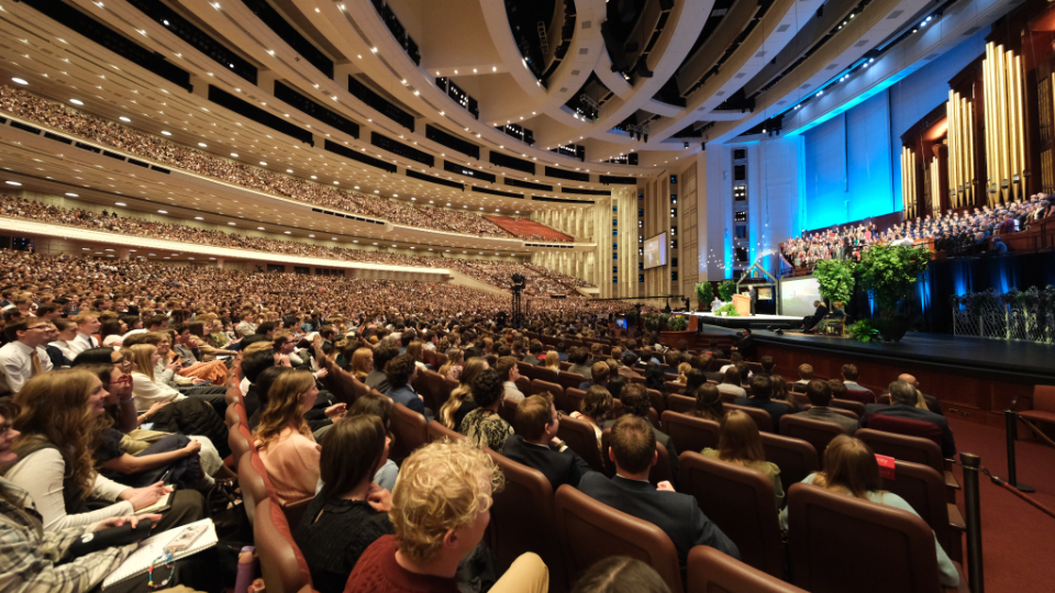 For the live broadcast, nearly 17,000 young adults from throughout Utah gathered in the Conference Center in Salt Lake City, a setting which Elder Kearon described as “cozy in the most gargantuan and enormous sort of way.”