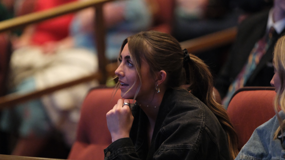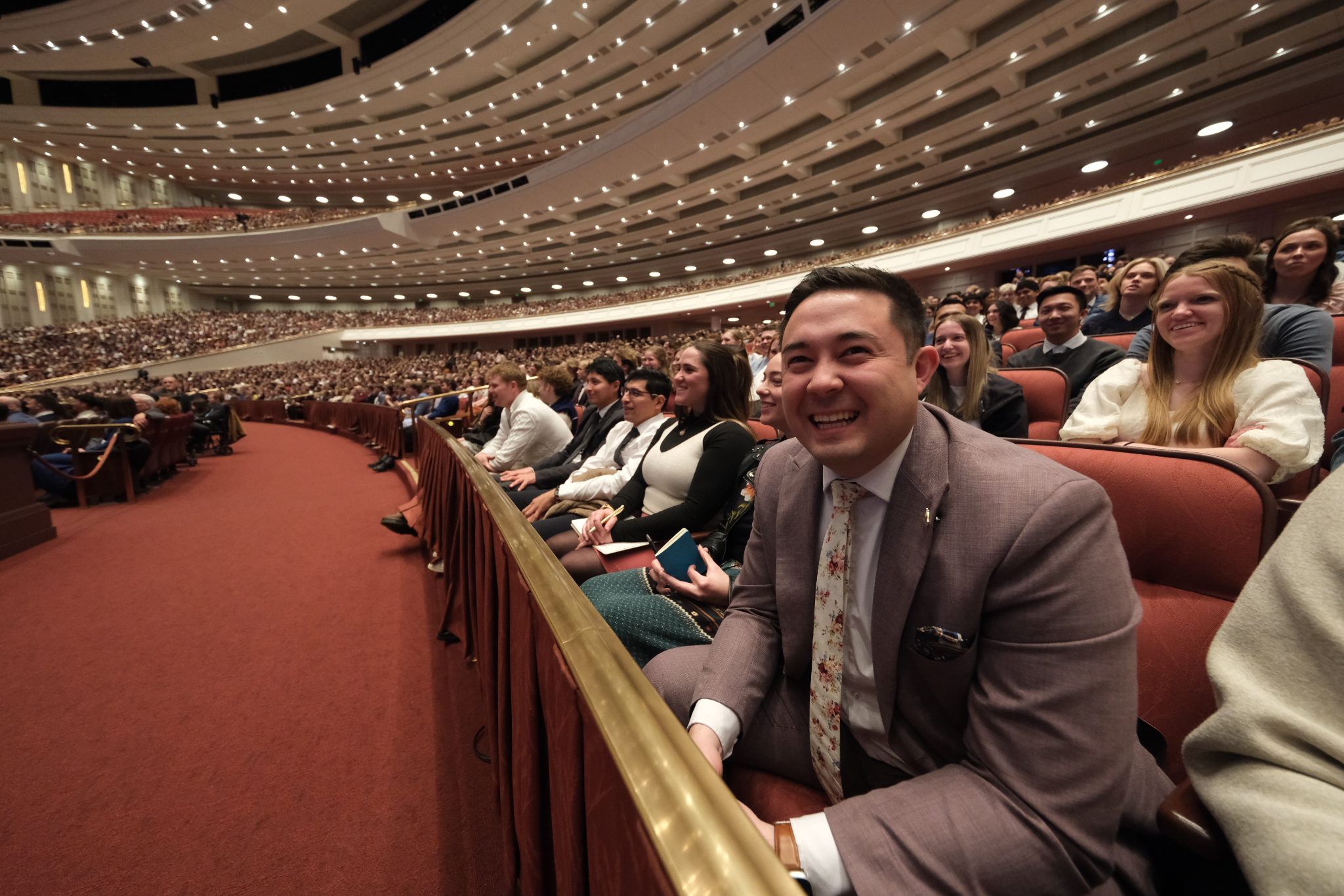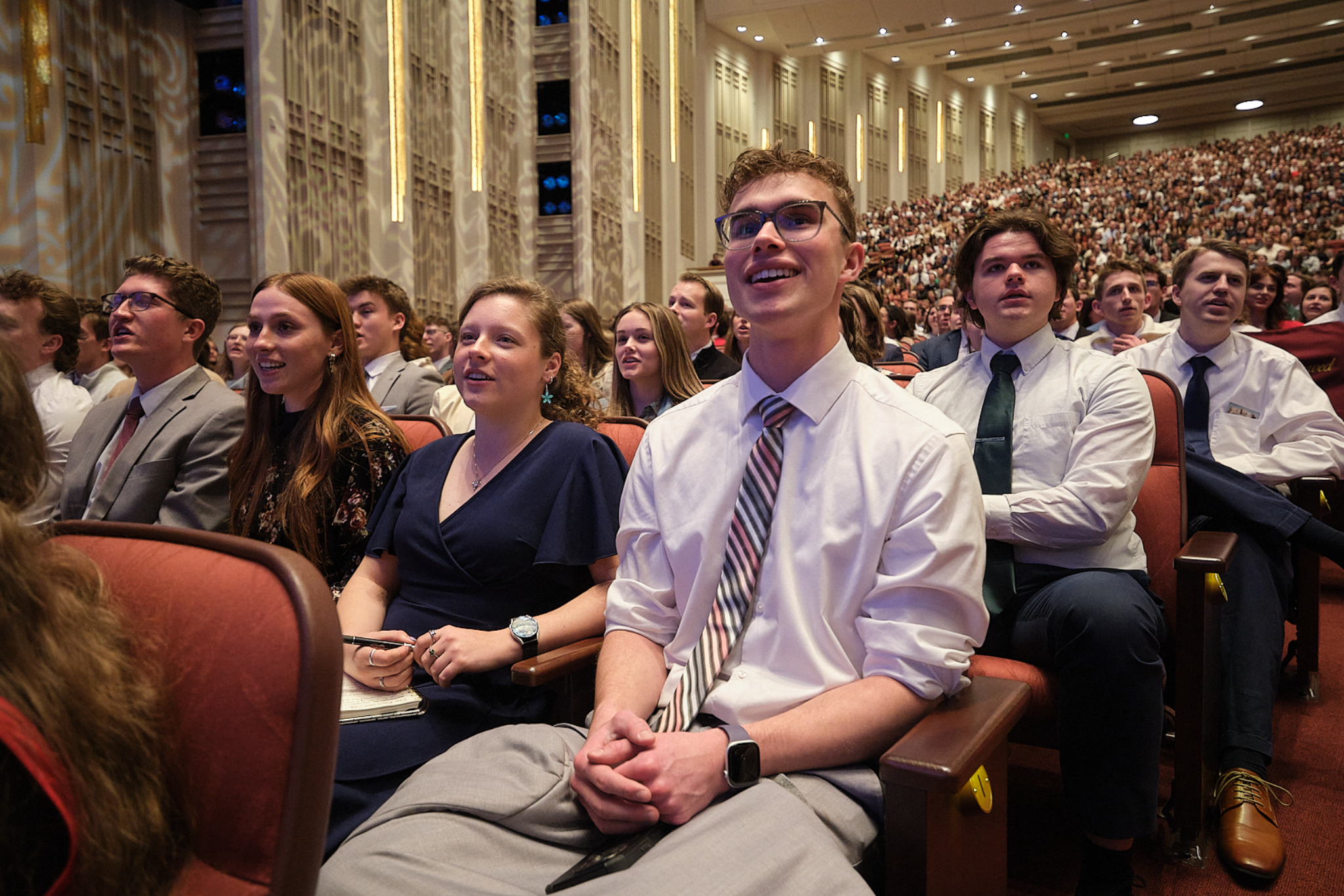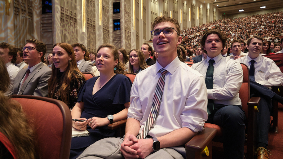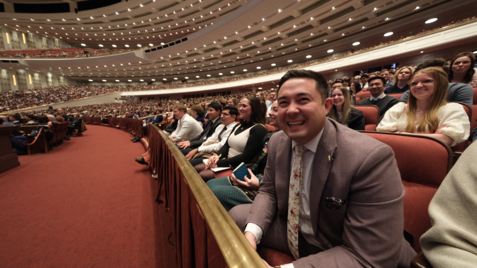 Young adults listen to Elder Patrick Kearon of the Quorum of the Twelve Apostles, and his wife, Jennifer, on February 1, 2026, at the Conference Center on Temple Square.2026 by Intellectual Reserve, Inc. All rights reserved.