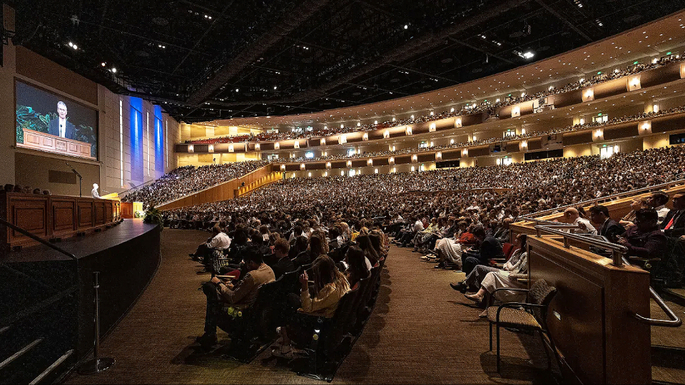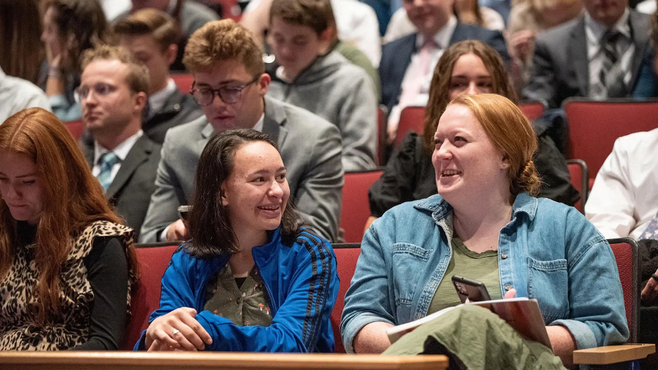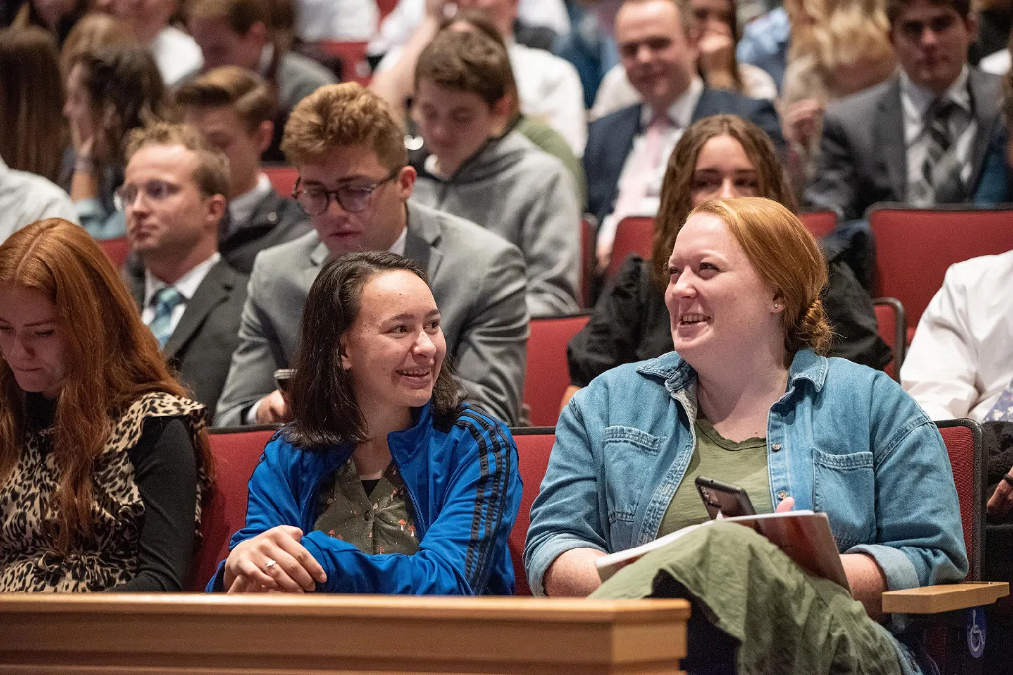 Attendees visit together before the October 30, 2022, devotional with Elder David A. Bednar of the Quorum of the Twelve Apostles at the BYU–I Center in Rexburg, Idaho. Photo by Madeline Carn, courtesy of BYU–Idaho. All rights reserved.