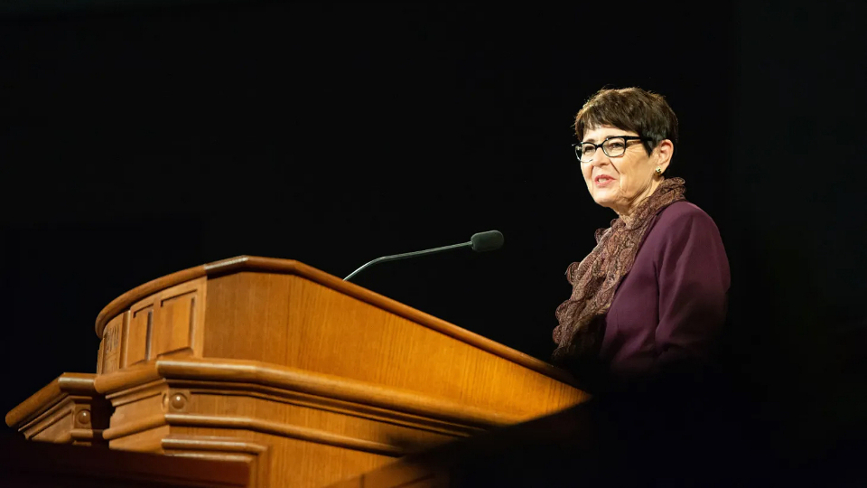 Sister Susan bednar speaks at a Brigham Young University–Idaho devotional on October 30, 2022, in Rexburg, Idaho. Photo by Carrin Nelson, courtesy of BYU–Idaho.All rights reserved.