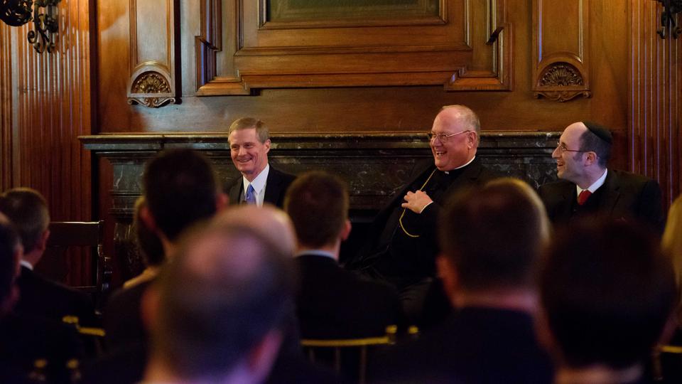 The Apostle joined Cardinal Timothy M. Dolan, the Roman Catholic archbishop of New York, and Rabbi Meir Soloveichik of the Congregation Shearith Israel in New York for the Humanum Colloquium in New York, Thursday, March 9, 2017. Rabbi Soloveichik is also director of the Straus Center for Torah and Western Thought at Yeshiva University.