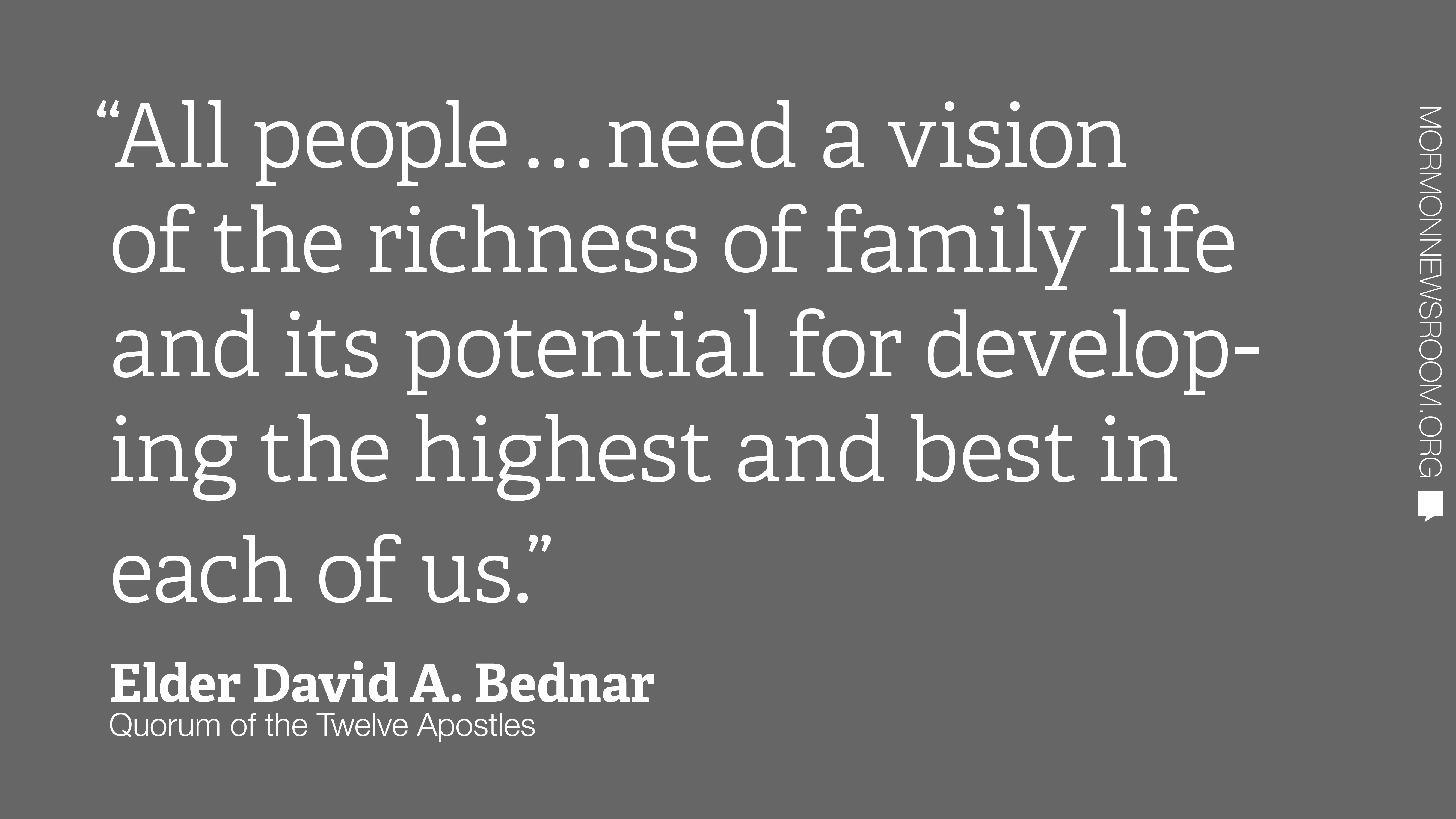 “All people, especially the rising generation, need a vision of the richness of family life and its potential for developing the highest and best in each of us,” Elder Bednar said.