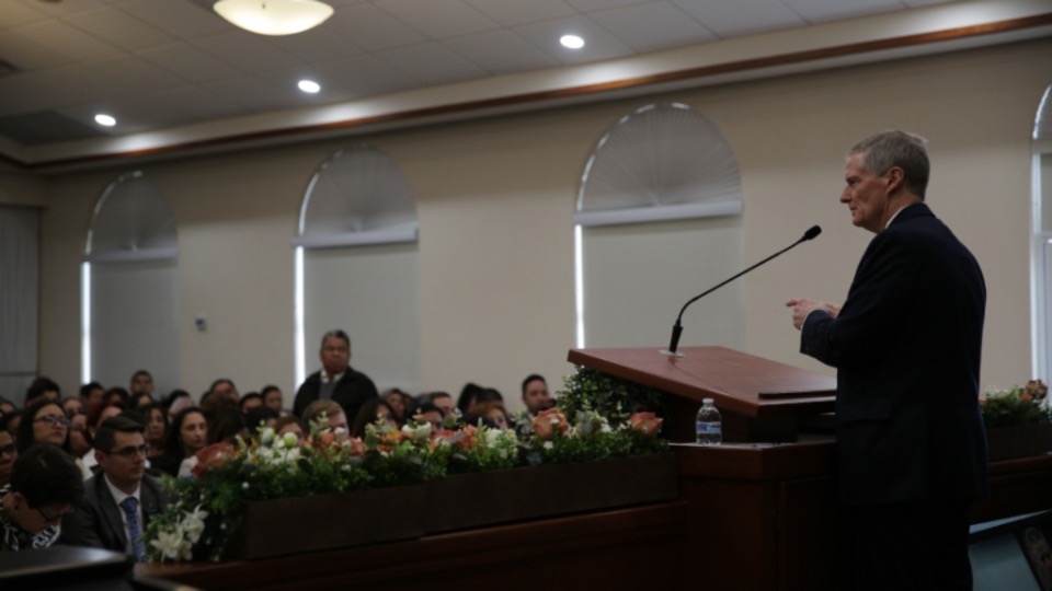 Elder David A. Bednar of the Quorum of the Twelve Apostles of The Church of Jesus Christ of Latter-day Saints addressed more than 3,000 people in a conference held Sunday, November 12, 2023, in Ciudad Juárez, located on the northern border of Mexico.