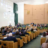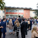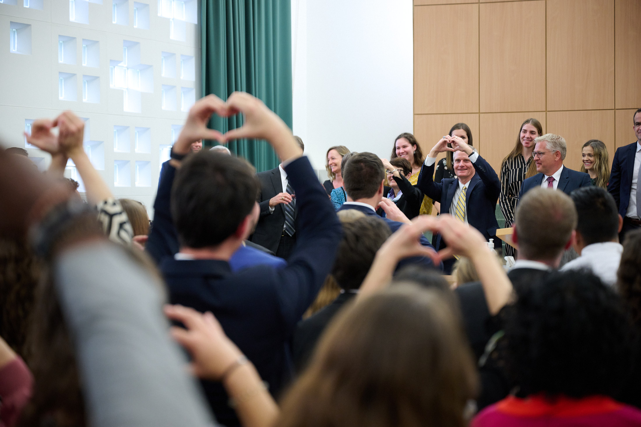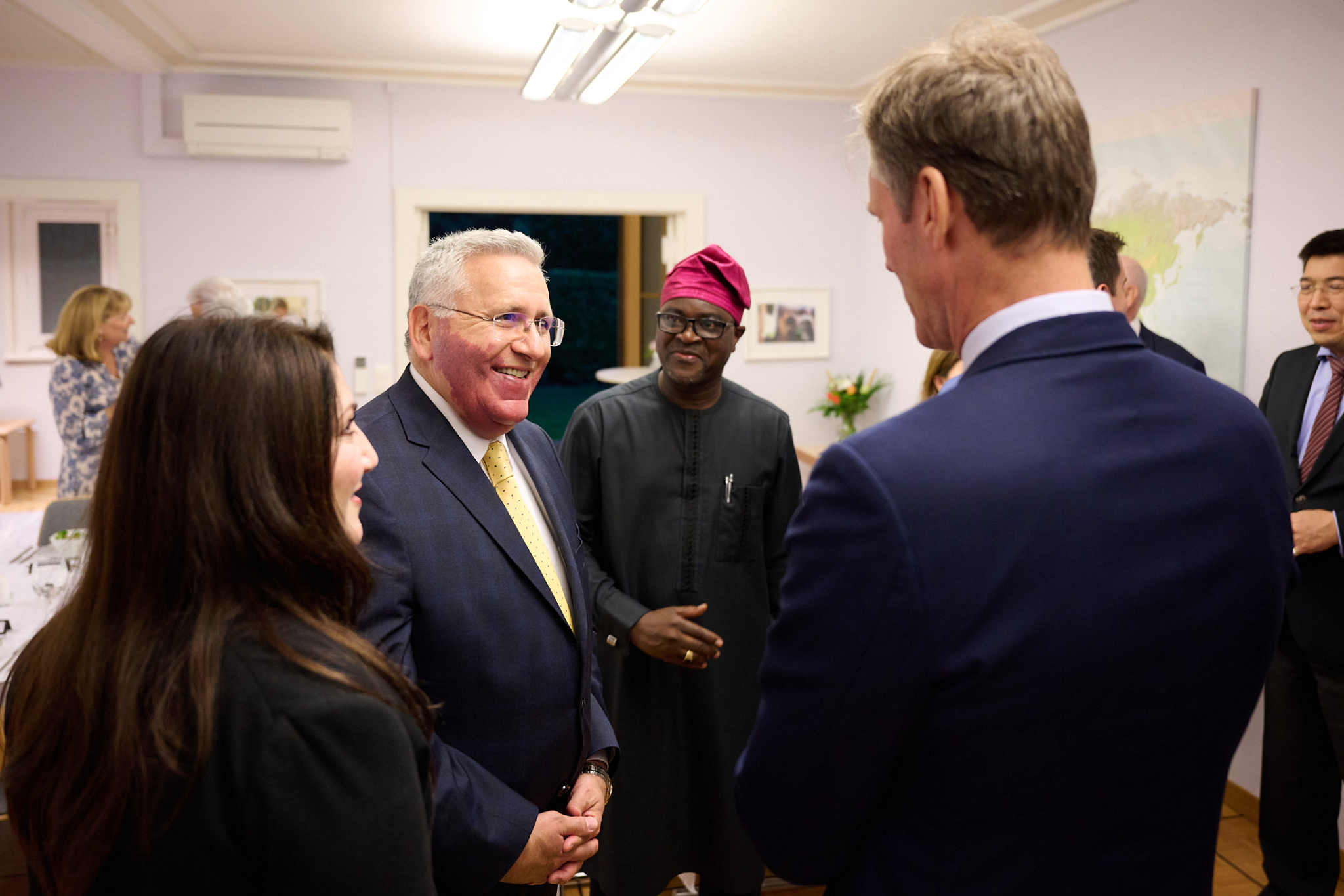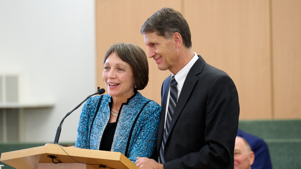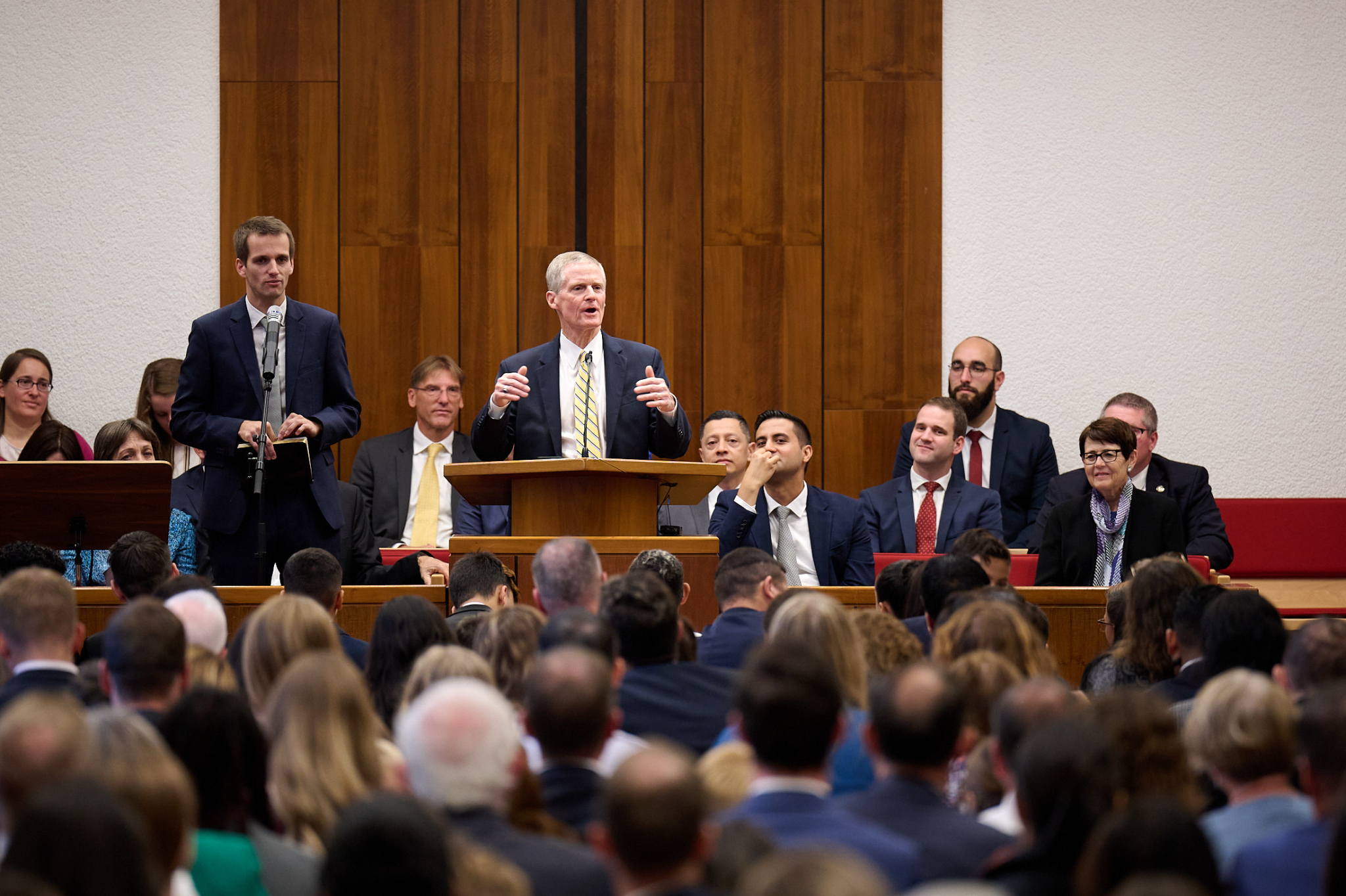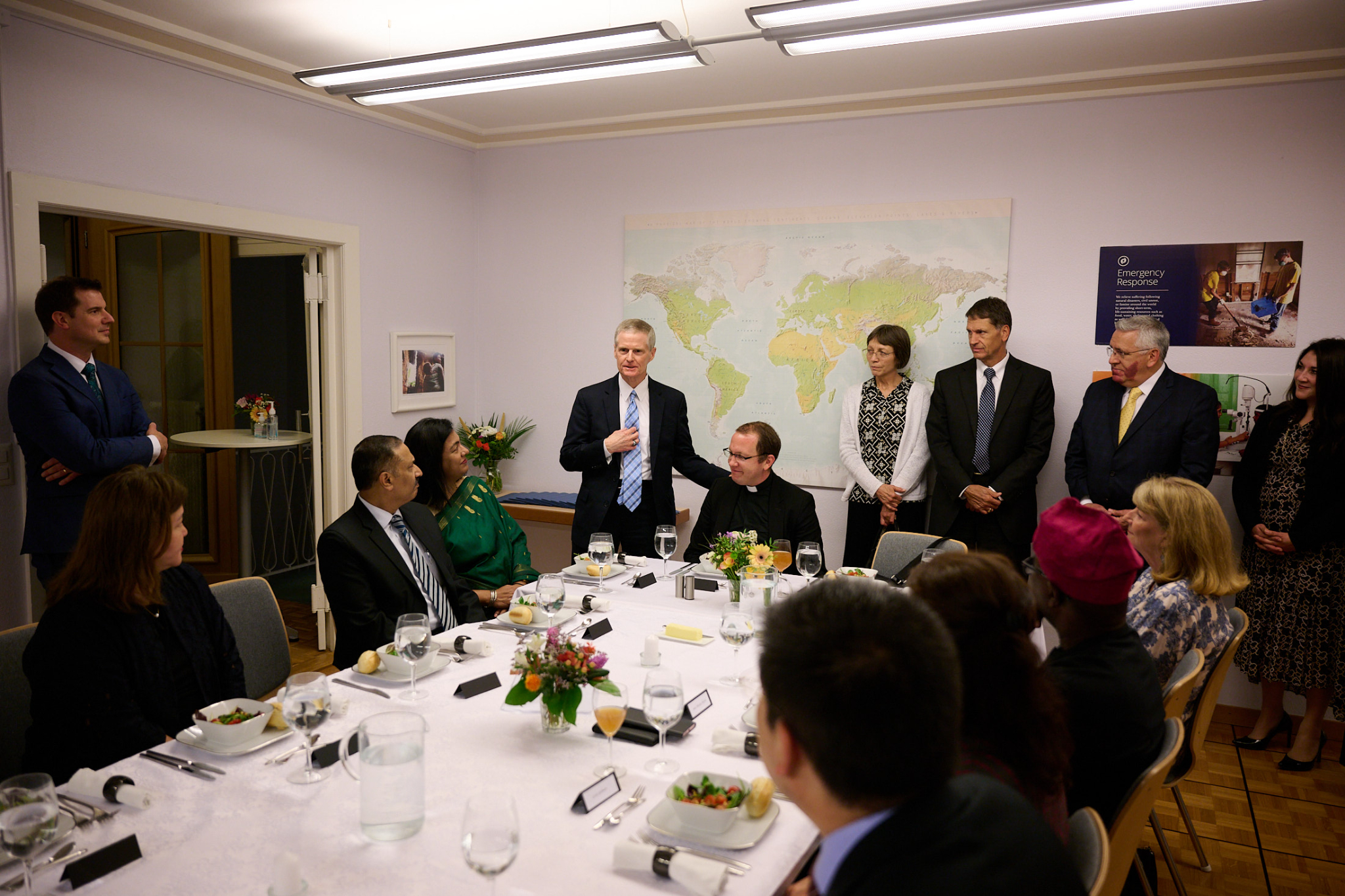 “We wanted to make sure that we could come and greet you and tell you how much we appreciate the partnerships that we have with you and all the things we’re able to do together. You honor us by coming here tonight,” said Elder Bednar, whose arrival in Europe was delayed because of canceled flights.