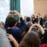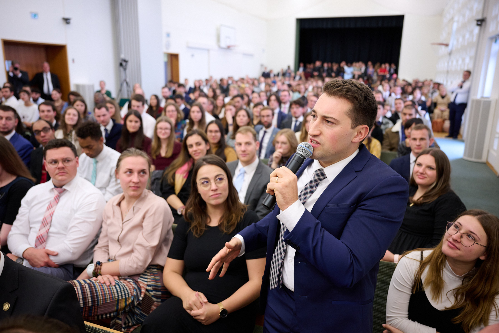 On Sunday morning, Elder Bednar spoke at a worship service in Geneva attended by all three of the area’s wards or congregations. In the afternoon, he focused on the young adults in all five Swiss stakes (like a diocese): Bern, Zurich, St. Gallen, Lausanne and Geneva.