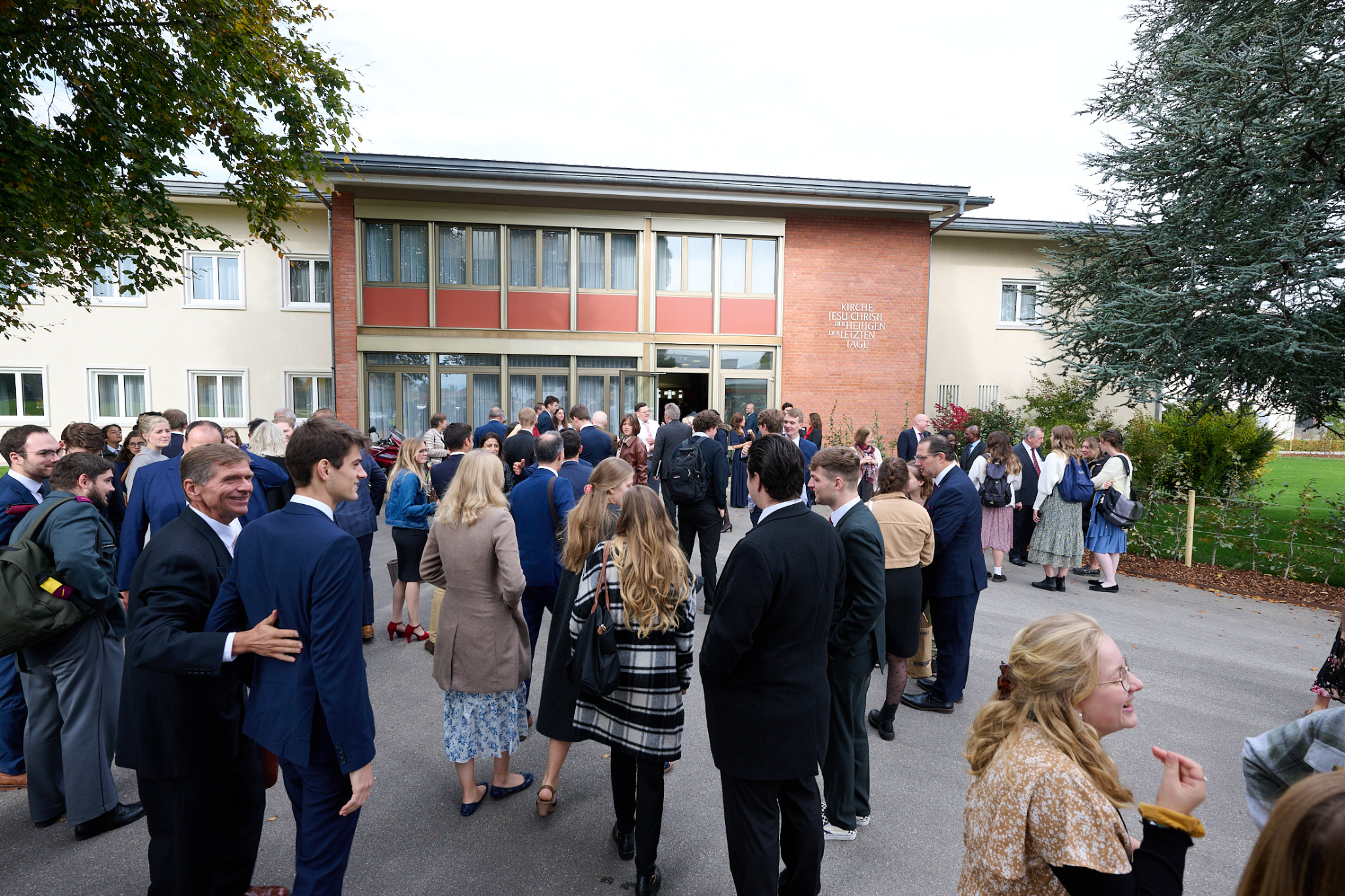 Young adults in Switzerland walk to a meetinghouse next to the Bern Switzerland Temple to hear Elder David A. Bednar of the Quorum of the Twelve Apostles speak on Sunday, October 9, 2022. 2022 by Intellectual Reserve, Inc. All rights reserved.Switzerland is home to more than 9,000 members in 35 congregations. The first temple to be built in Europe was the Bern Switzerland Temple. It was dedicated in 1955. Some of the Latter-day Saint pioneers also emigrated to Utah to help build up Zion in the United States.