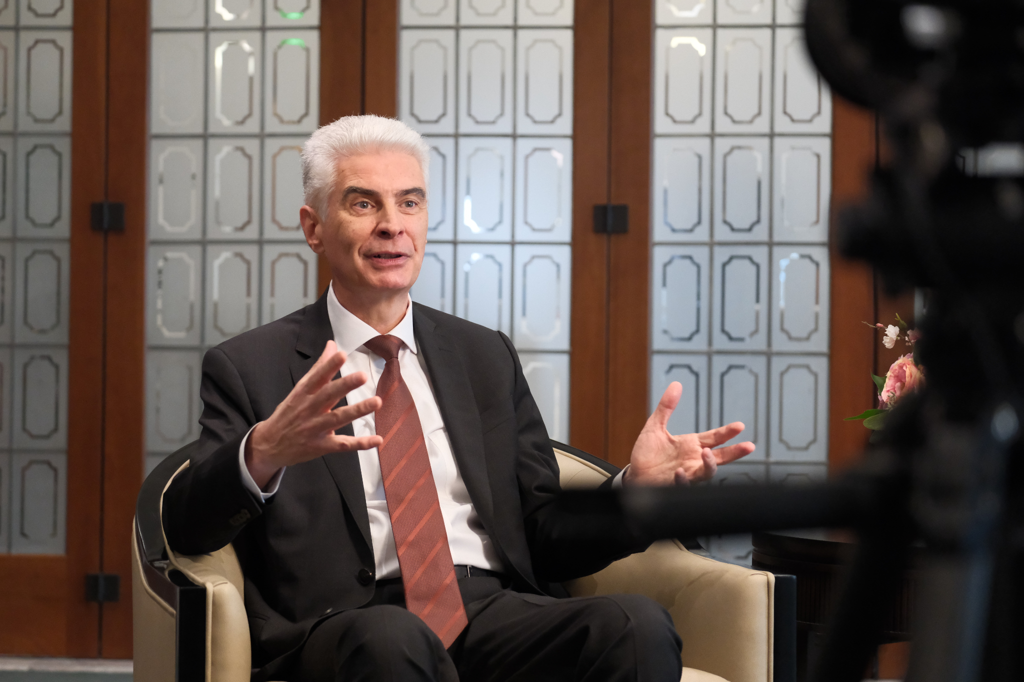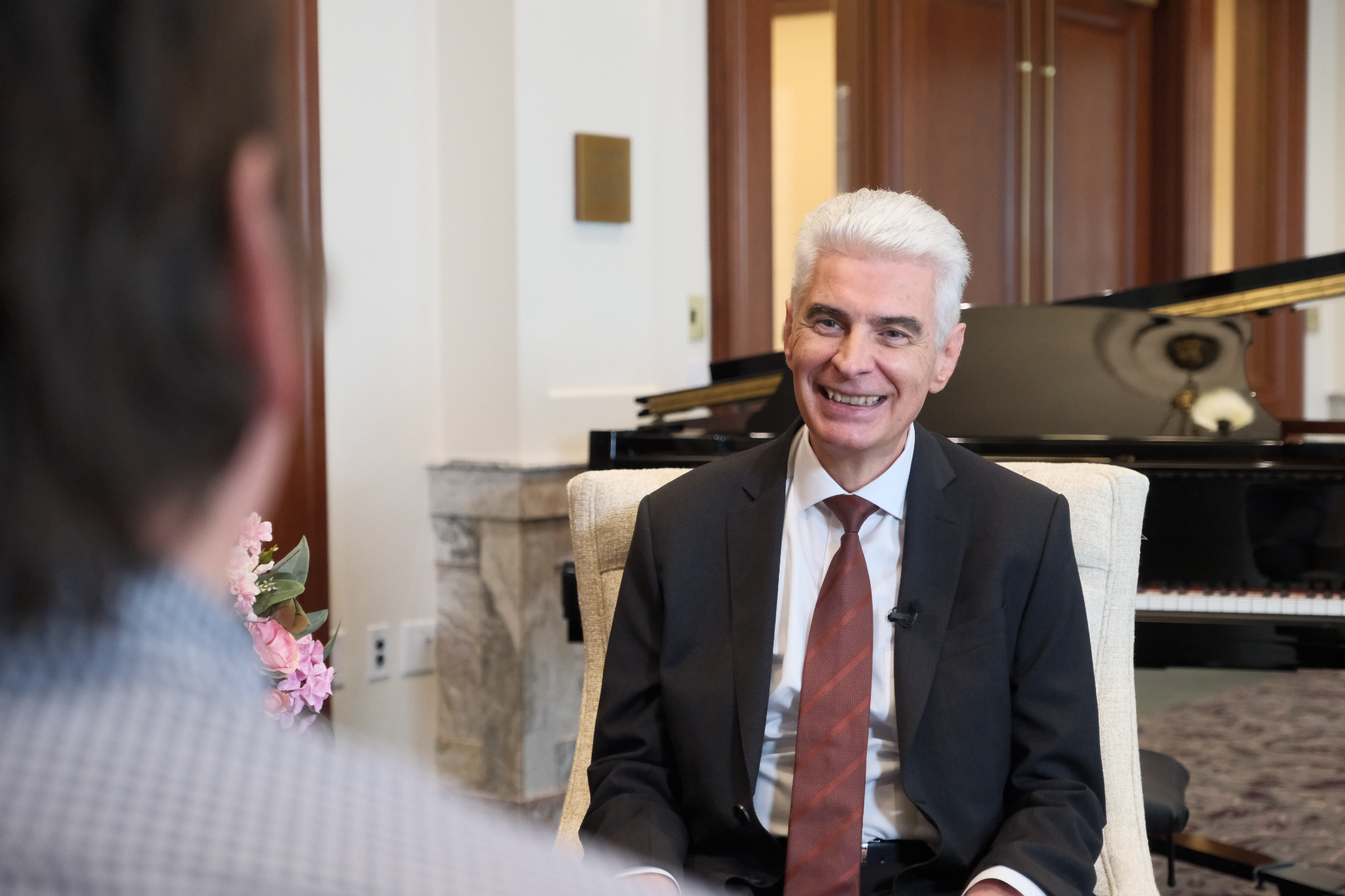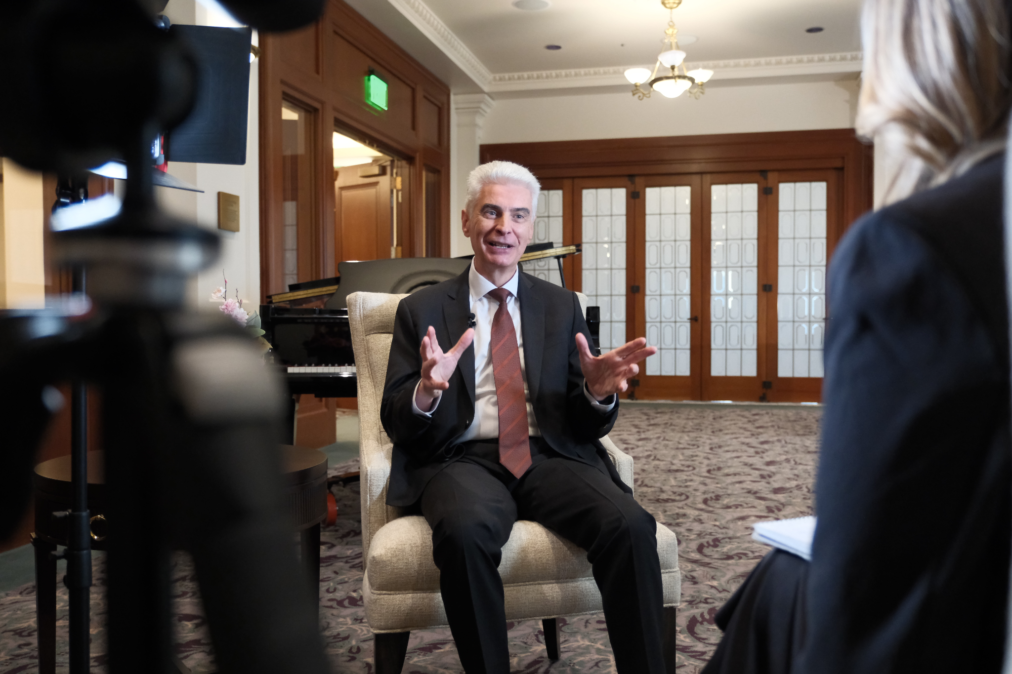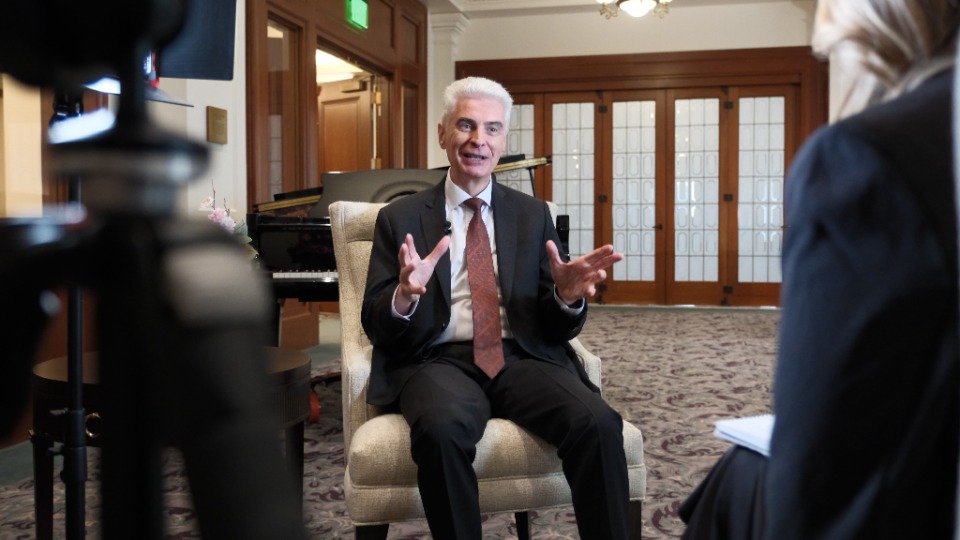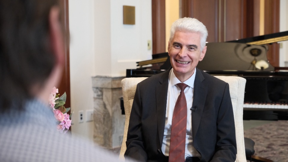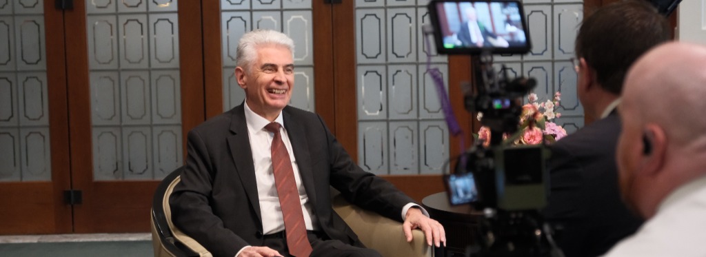 Members of the news media had their first opportunity to speak with Elder Gérald Caussé, the newest member of the Quorum of the Twelve Apostles, on Friday, November 7, 2025, in the Joseph Smith Memorial Building on Temple Square.