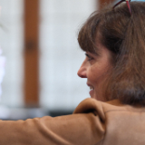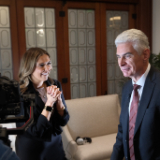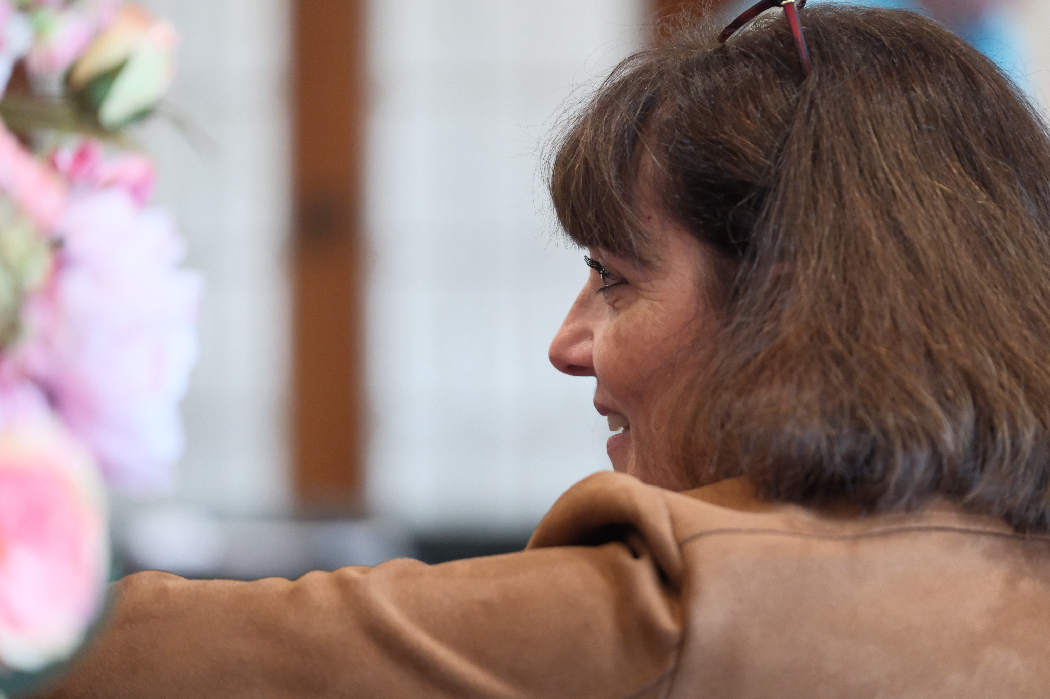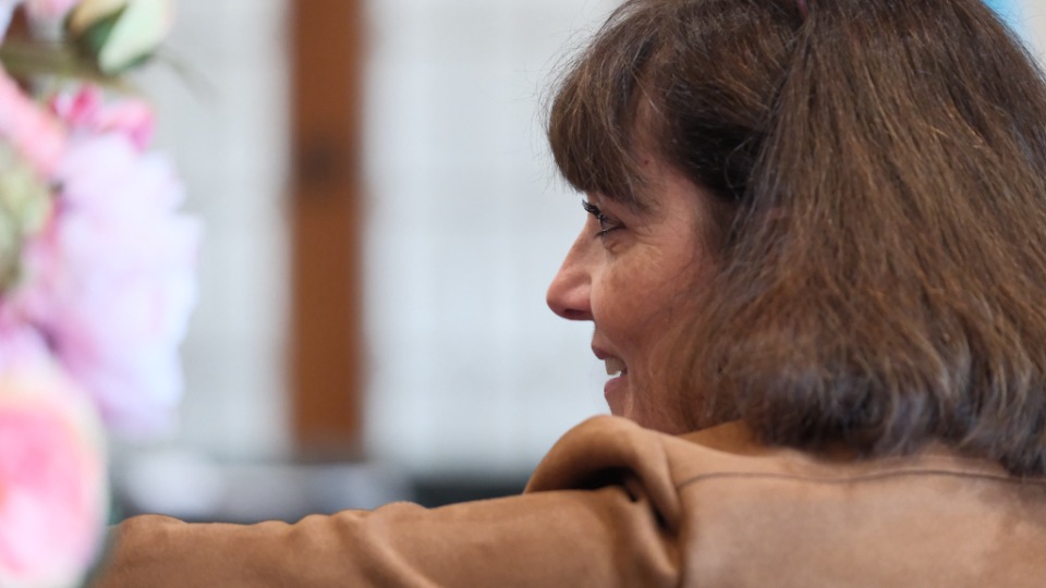 Valérie Caussé, wife of Elder Gérald Caussé of the Quorum of the Twelve Apostles, participates during the media availability that took place in the Joseph Smith Memorial Building on Friday, November 7, 2025.© 2025 by Intellectual Reserve, Inc. All rights reserved.Their family motto, he added, is to go where the Lord wants them to go.