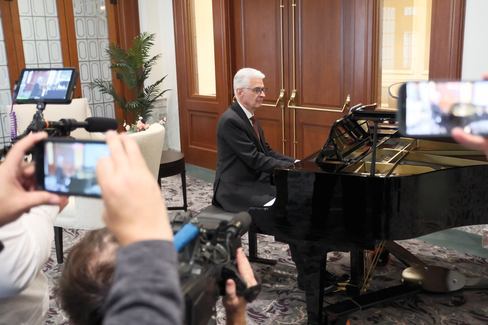 Elder Gérald Caussé, the newest member of the Quorum of the Twelve Apostles, plays the piano for members of the news media in the Joseph Smith Memorial Building on Friday, November 7, 2025. Elder Caussé is an accomplished pianist. He developed a love for music when he began taking piano lessons at age 7.© 2025 by Intellectual Reserve, Inc. All rights reserved.They began dating when they were in the same ward in Paris. Elder Caussé, who is an accomplished pianist, said music was one of the ways they connected. He was a pianist in their ward. She was in the choir.