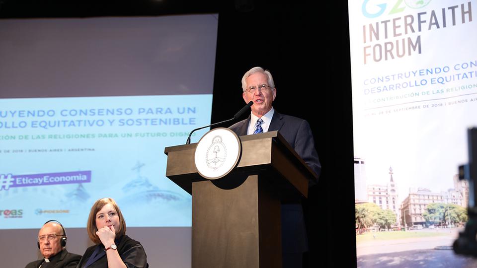“As I fulfill my assignment to speak about what the Church is doing to help the less fortunate, I want you to know that we don’t seek recognition, only to share our experience and build understanding,” said Elder D. Todd Christofferson of the Quorum of the Twelve Apostles of The Church of Jesus Christ of Latter-day Saints. Elder Christofferson joined a number of other global faith leaders at the G20 Interfaith Forum in Buenos Aires, Argentina, Wednesday, September 26, 2018, to discuss the Church’s efforts to help the needy.
