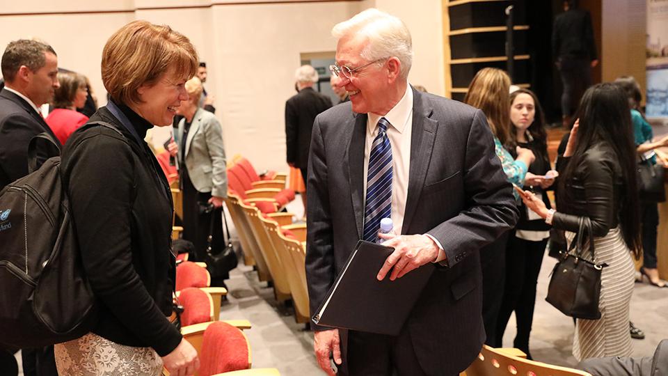 Sister Sharon Eubank, director of LDS Charities and first counselor in the Church’s Relief Society general presidency, participated in two sessions at the forum.