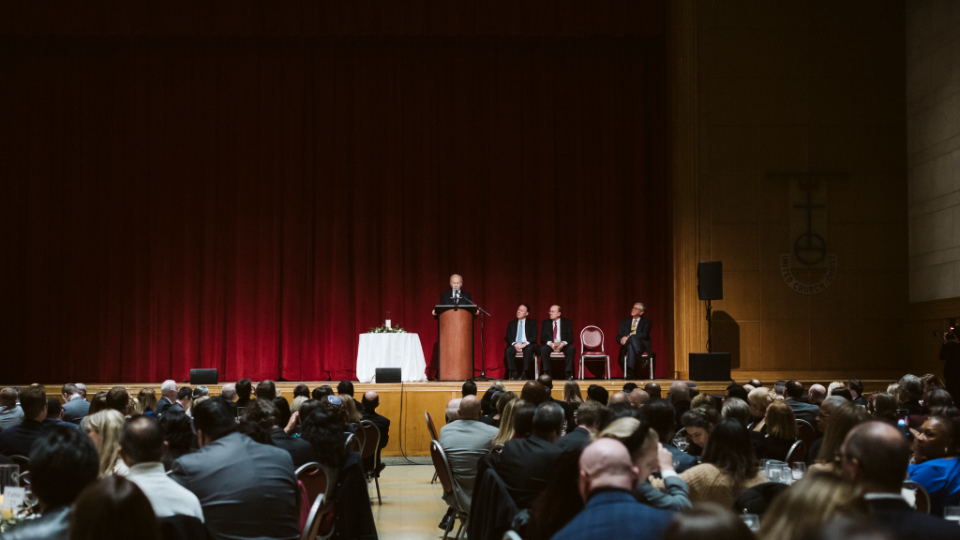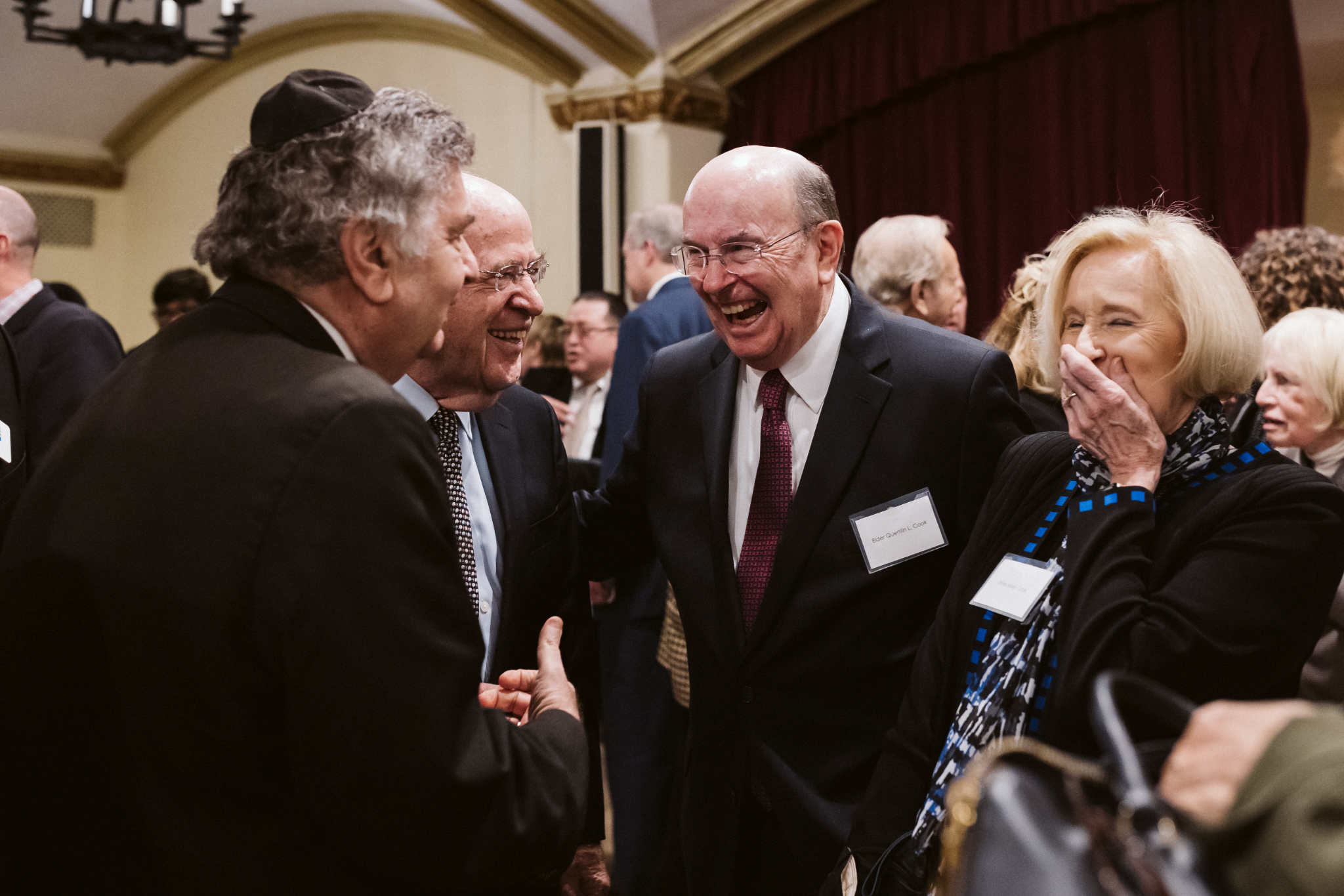Elder Quentin L. Cook of the Quorum of the Twelve Apostles of The Church of Jesus Christ of Latter-day Saints, with his wife Mary (right), share a laugh with Rabbi Joe Potasnik, executive V.P. of the New York Board of Rabbis (left) and three-time New York Attorney General Bob Abrams (center) at an award ceremony to honor the accomplishments of former U.S. Senator Joe Lieberman at Riverside Church in New York City on Thursday, March 3, 2022.2022 by Intellectual Reserve, Inc. All rights reserved.Sen. Lieberman concluded by saying America’s greatest strength is not in its divided politics but in the religious faith of its citizens. It is in our houses of worship, he said, that we find “guidance and values” that yield “a sense of unity and common action.”