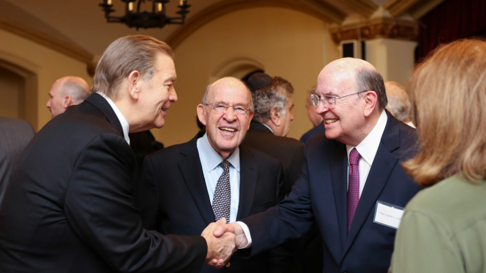 Elder Cook, speaking after Sen. Lieberman, said he has admired his friend from Connecticut for many years. Their relationship goes back to at least 2011, when the leader from Connecticut spoke at Brigham Young University about the values essential to the founding of the United States. The duo, along with Elder Jeffrey R. Holland, were also part of a delegation of Jewish and Latter-day Saint leaders who gathered in Jerusalem in 2016 to celebrate the 175th anniversary of Orson Hyde’s prayer to dedicate the Holy Land as a gathering place for the Jewish people.