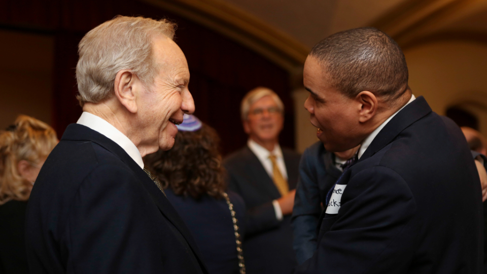 Each year, NYLDSPA gives a member of the local community an award for visionary leadership. Sen. Lieberman was this year’s recipient, receiving the honor from another former senator, Gordon Smith.