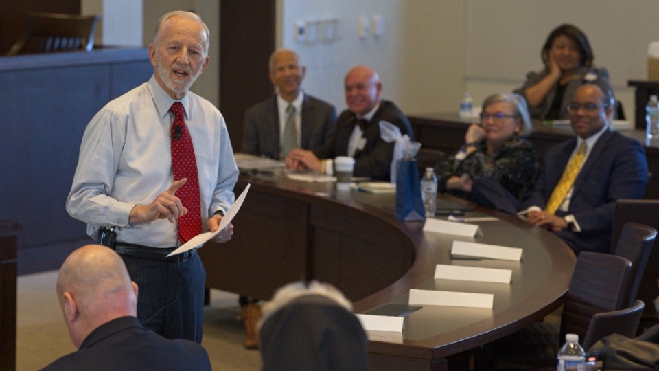 Dean William Hubbard of the University of South Carolina Rice School of Law and former president of the American Bar Association opened the conference. Other speakers included Dr. Elizabeth Chew, chief executive officer of the South Carolina Historical Society; Bishop David Rwhynica Daniels Jr. of the Ecumenical Office of the African Methodist Episcopal Church; George Clare, president of the Aiken Muslim Association; Father Jay Scott Newman, chancellor and canonical counsel of the Roman Catholic Diocese of Charleston; Rabbi Yossi Refson, director of the Center for Jewish Life–Chabad of Charleston and the Lowcountry; and Holli Emore, chair of the Interfaith Partners of South Carolina.