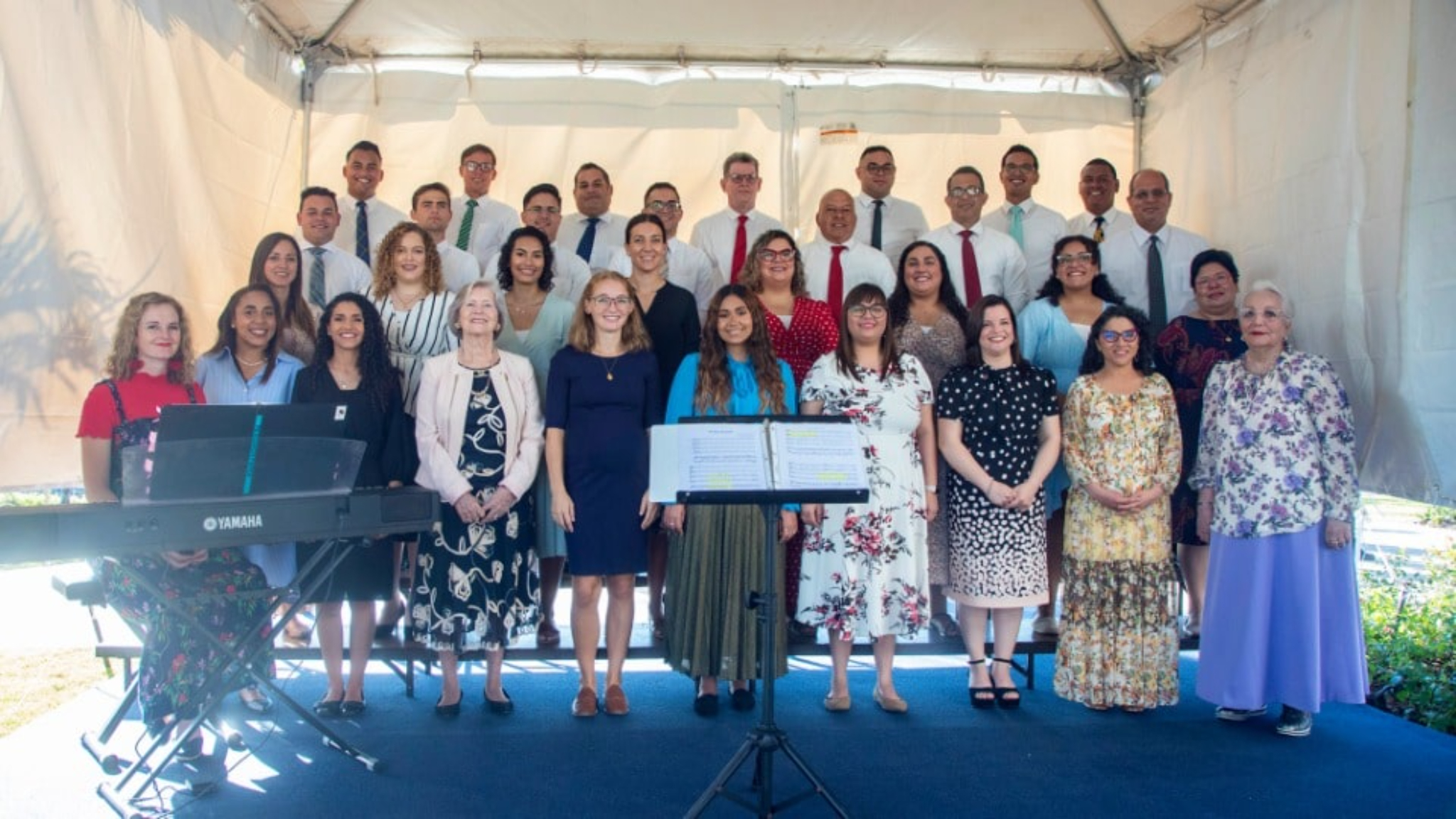 To offer a greater number of people the opportunity to participate in the dedication ceremony, local Church leaders equipped the arrival hall of the temple and five stake centers around the island, including in the Virgin Islands (St. Croix and St. Thomas), with remote access. This allowed over 2,100 Church members to participate remotely. Through this modality, temporarily, the meetinghouses became “an extension of the temple,” as expressed by Héctor Álvarez, who together with his wife Amarilis Santiago served as event coordinators for the open house and the dedication of the temple for a short time. Preparations took more than a year.