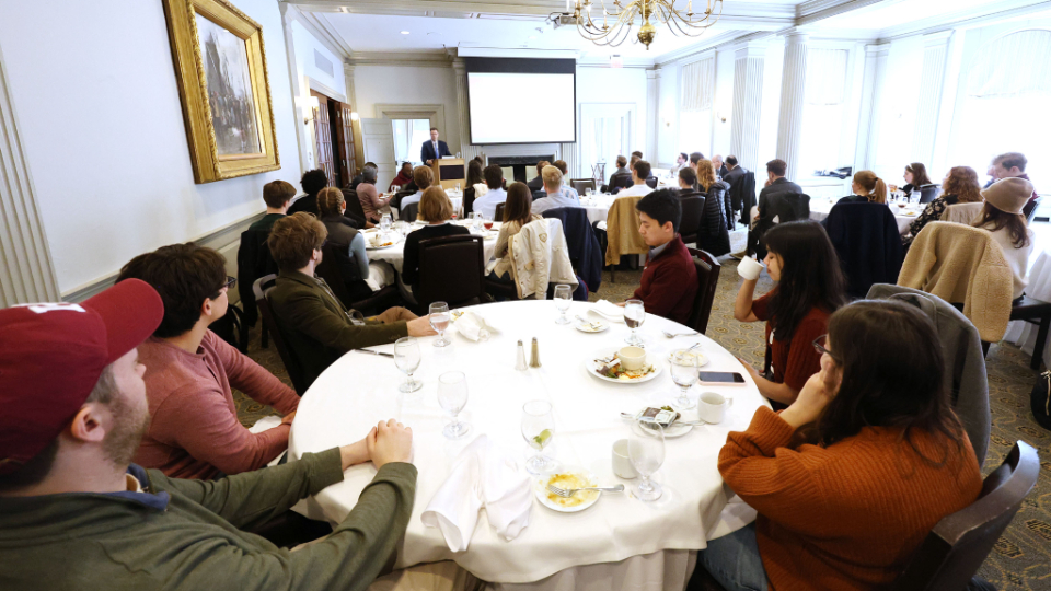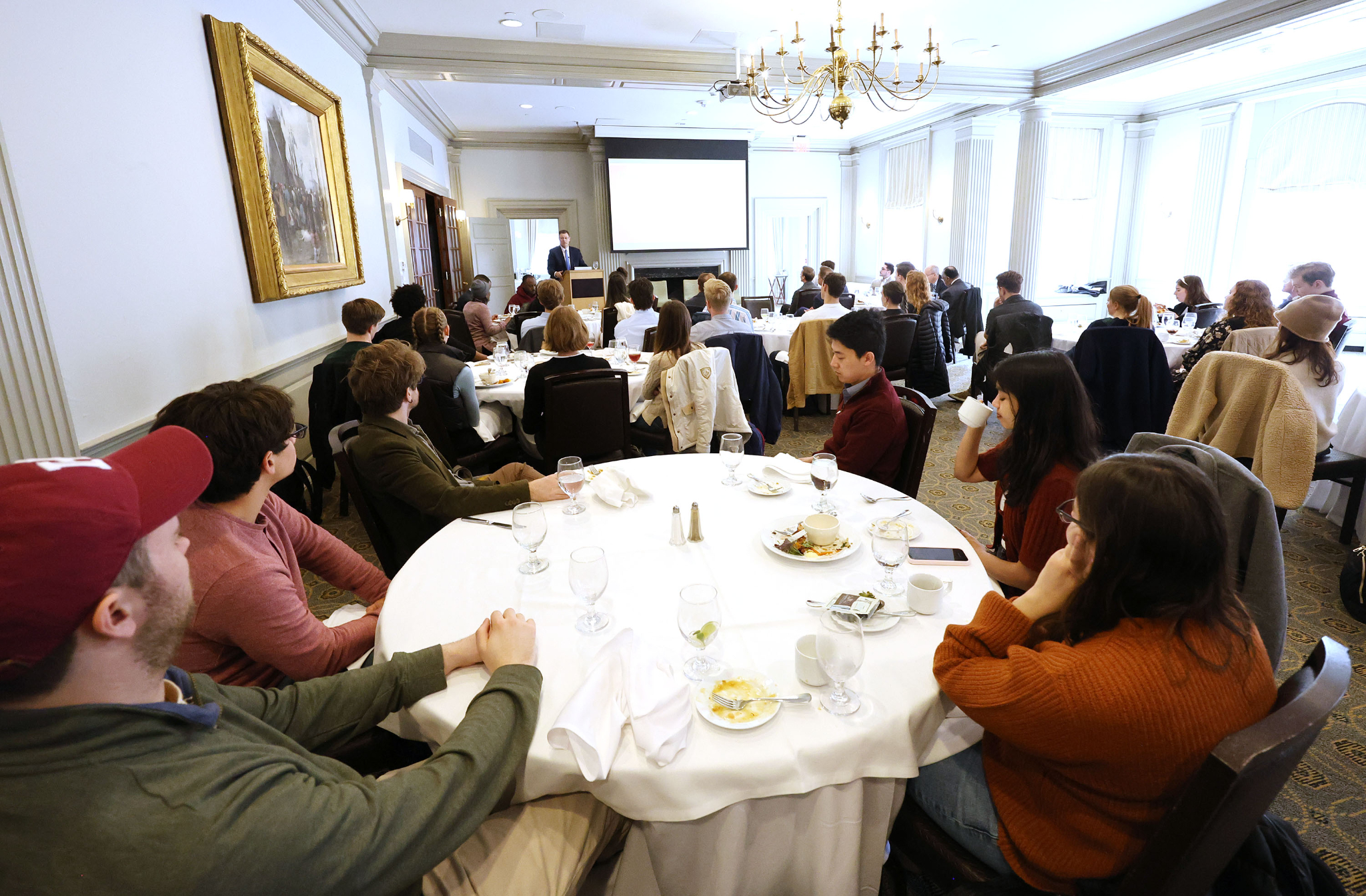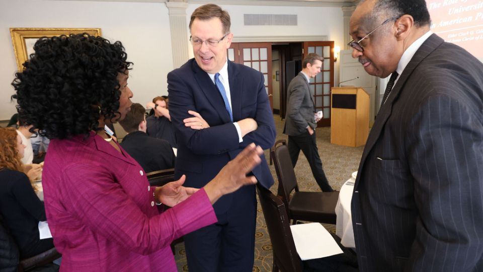 Elder Clark G. Gilbert returned to his roots at Harvard University this week to speak with college students and faculty about the role of faith-based colleges in American pluralism and diversity in society at the Harvard Faculty Club on the Cambridge, Massachusetts, campus on Thursday, March 26, 2026.