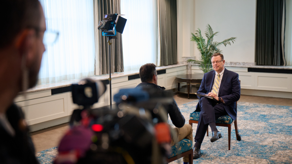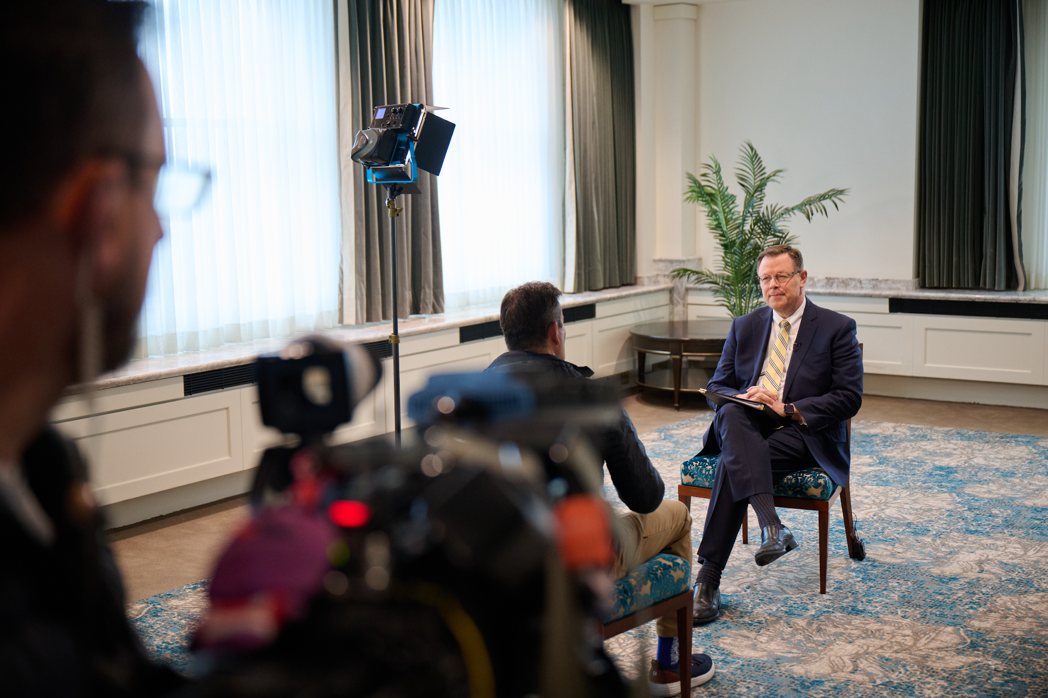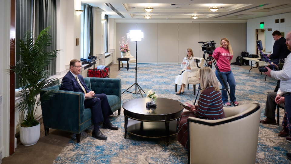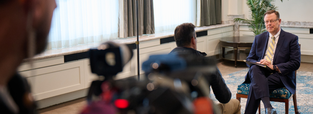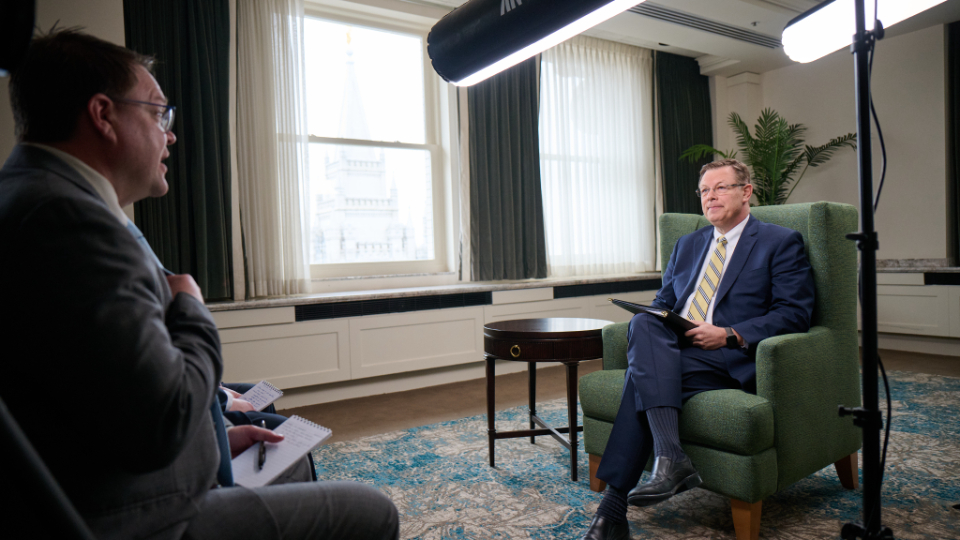 Members of the news media had their first opportunity to speak with Elder Gilbert on Friday, February 13, in the Joseph Smith Memorial Building on Temple Square.