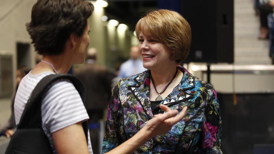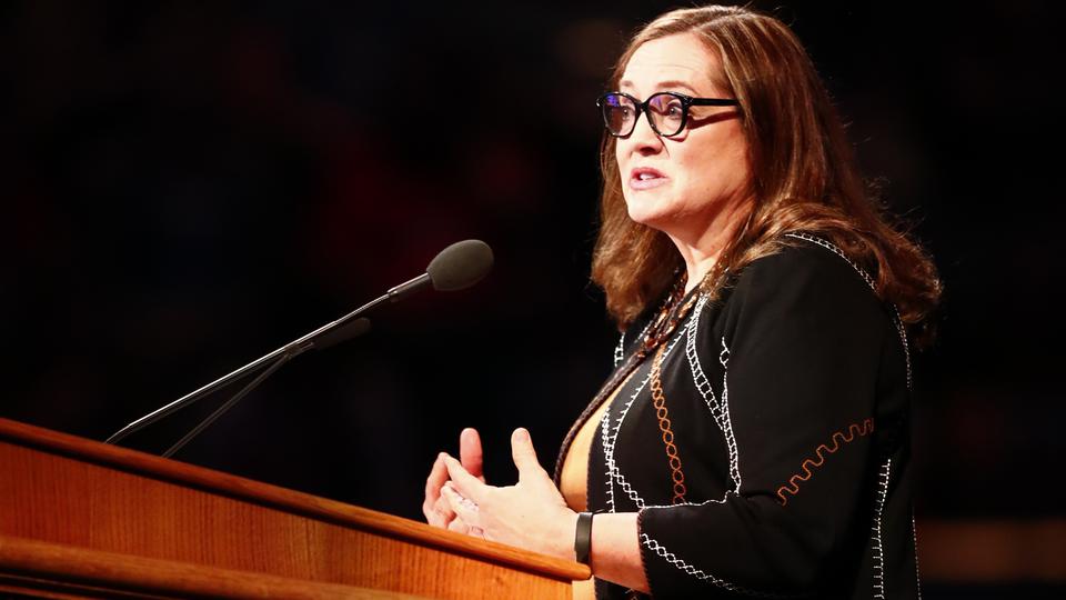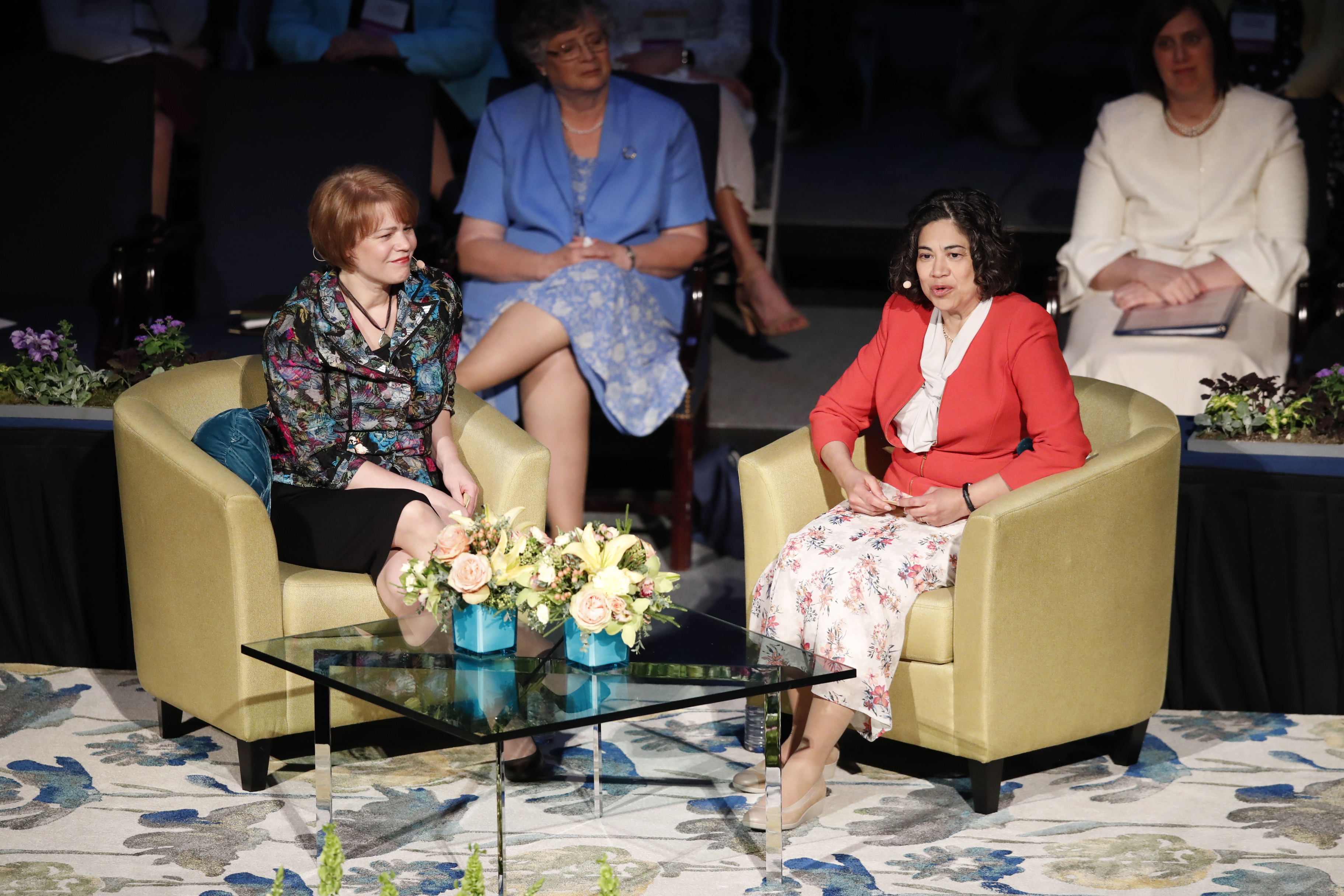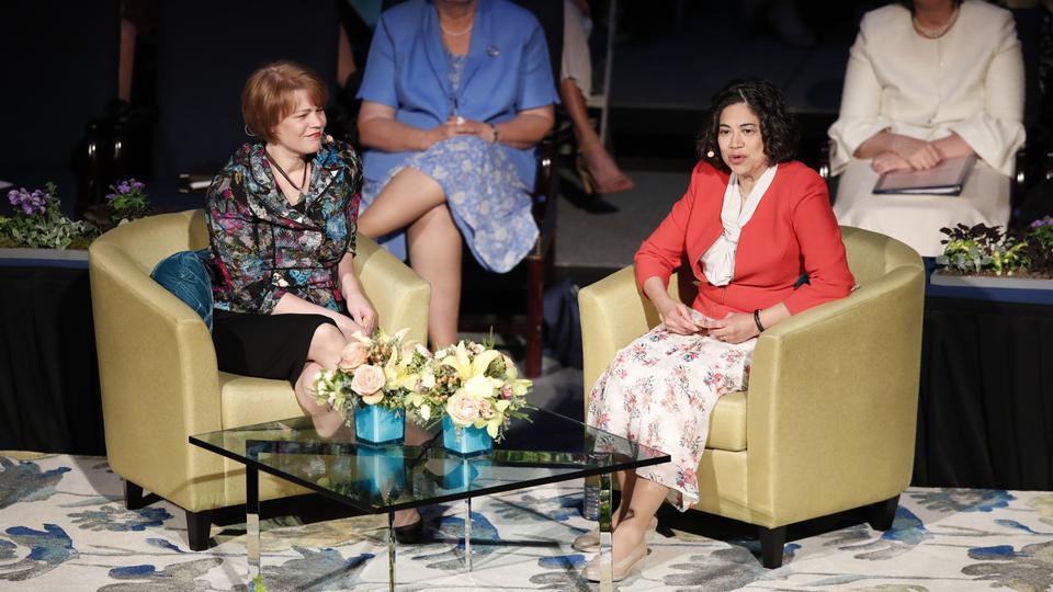 Part of the conference’s Thursday events included the two counselors of the Relief Society general presidency, Sister Sharon Eubank and Sister Reyna I. Aburto, discussing the Church’s new ministering program.