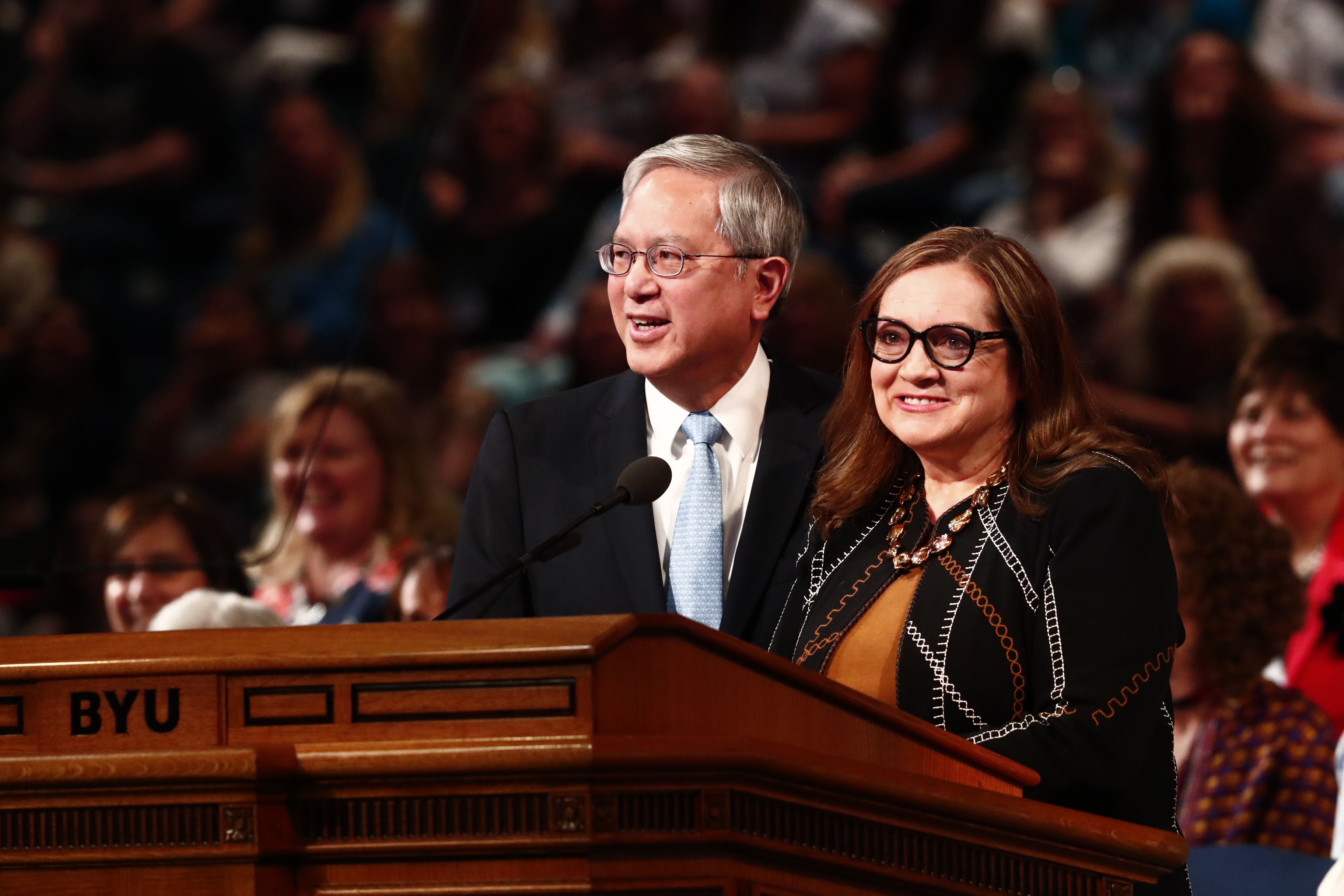 Elder Gerrit W. Gong of the Quorum of the Twelve Apostles and his wife, Susan, taught a gathering of more than 10,000 women of all ages Friday that both everyday and dramatic acts of selfless service are essential to increasing fellowship and unity in congregations and communities.