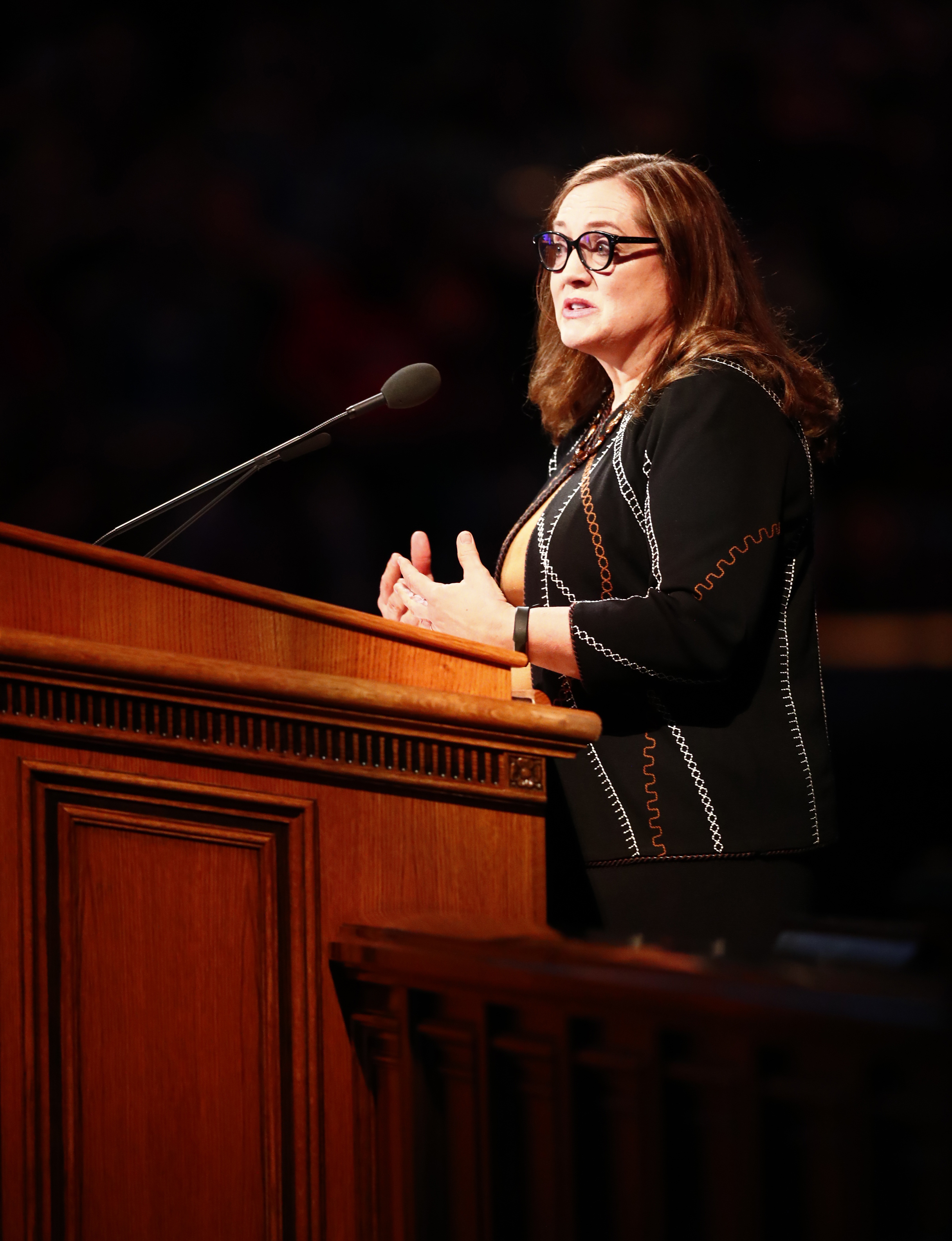 Both women auxiliary leaders encouraged the audience not to feel overwhelmed. “Doing better doesn’t always mean doing more. And if you do just one inspired thing each day, you are nevertheless the Lord’s agent,” said Sister Eubank. “I’ve calculated if I do one thing that comes through inspiration, 365 times per year for 50 years, that will be a total of 18,250 things that the Lord wanted done.”