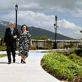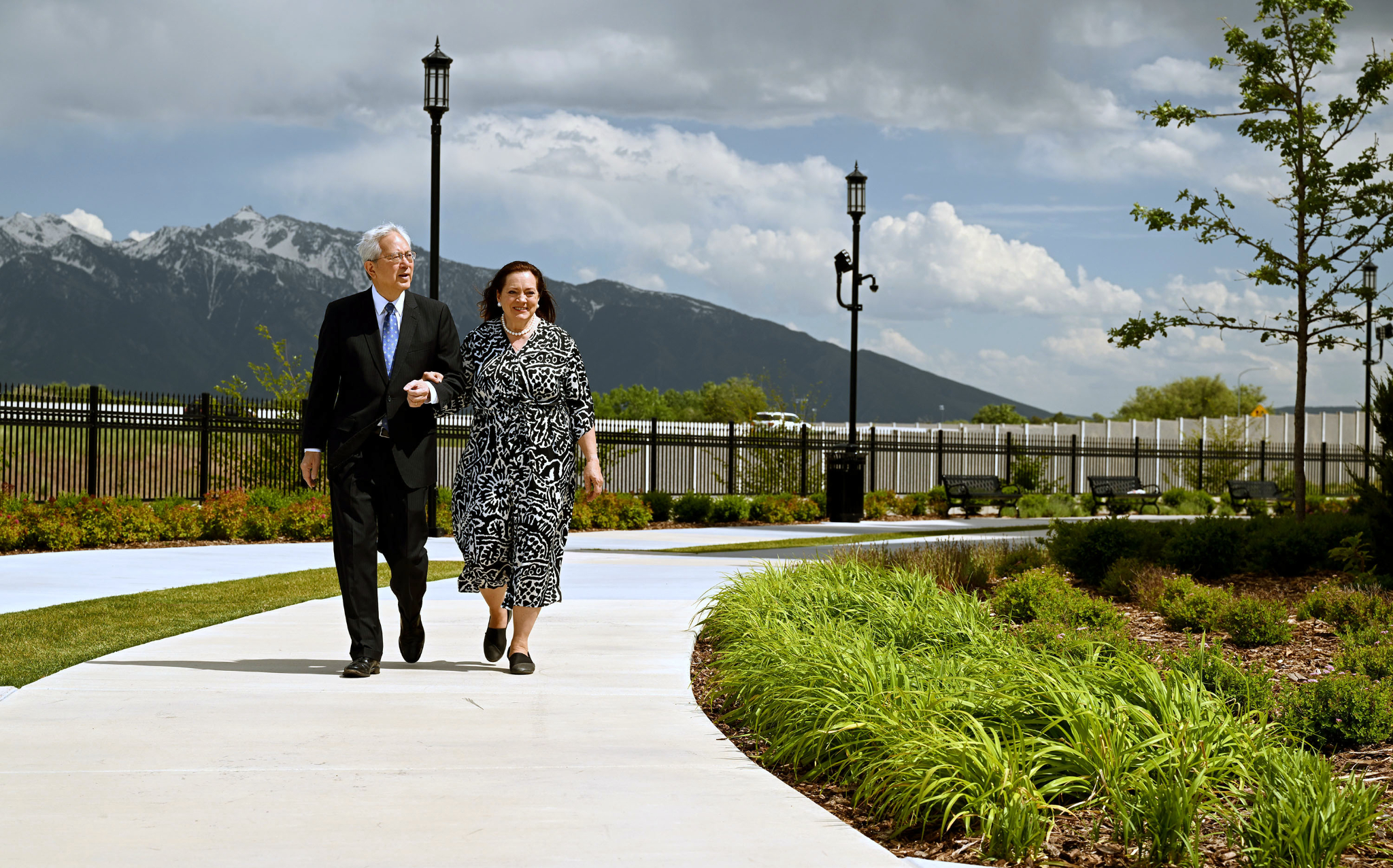 Elder Gerrit W. Gong of the Quorum of the Twelve Apostles and his wife, Sister Susan Gong, walk around the Taylorsville Utah Temple on Saturday, June 1, 2024.