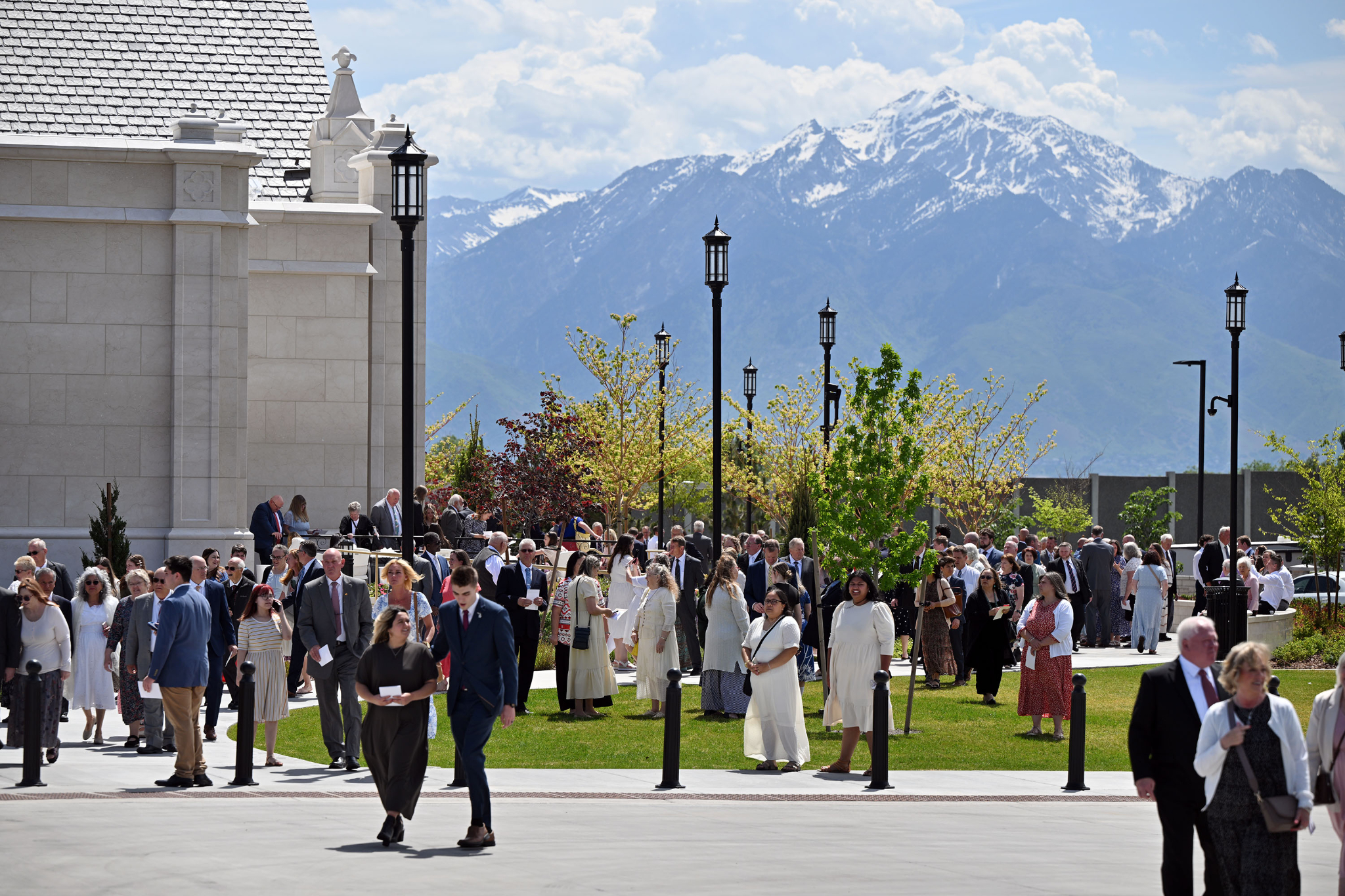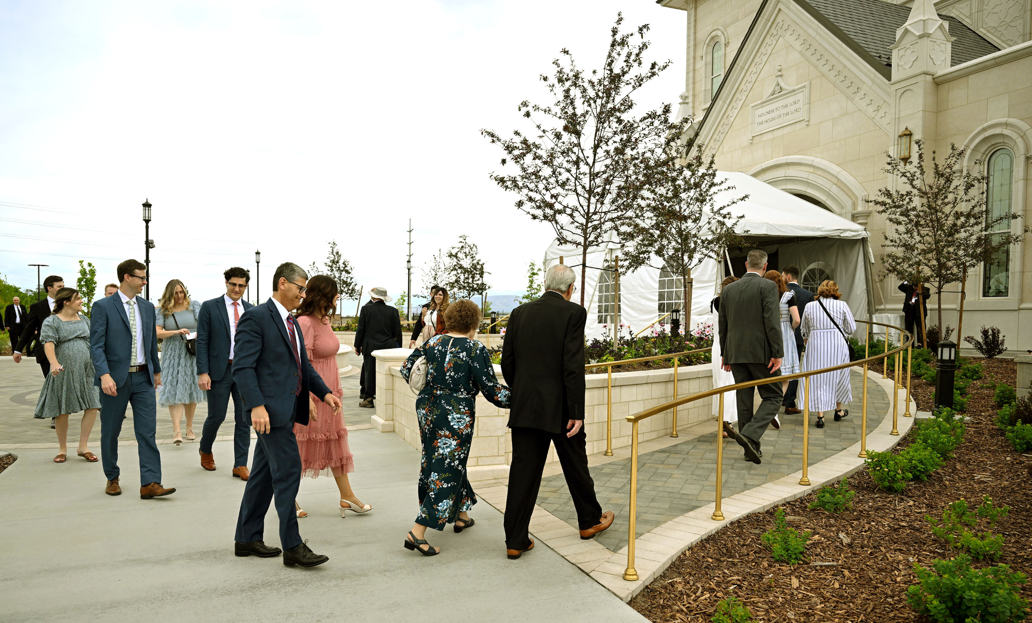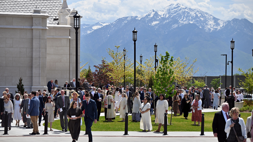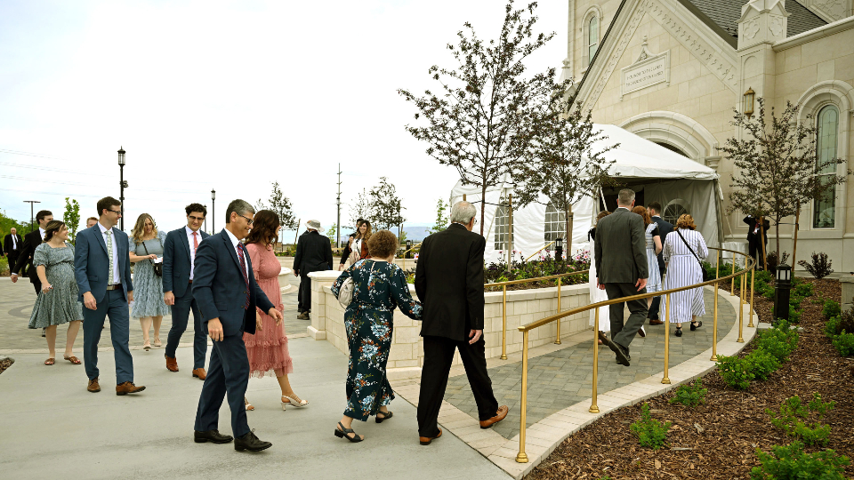 People make their way into the Taylorsville Utah Temple for the dedication on Sunday, June 2, 2024.With temples coming closer to many members in many places, including now in Taylorsville, Elder Gong said he hopes people will find their circumstances include “a desire to come more frequently to the Lord in the house of the Lord.”